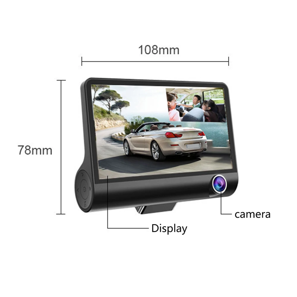 3 объектива: 3 камеры для записи, фронтальная камера Full HD 1080P, камера заднего вида 720P, внутренняя камера 480P, может записывать в любом месте вокруг вашего автомобиля и внутри вашего автомобиля.