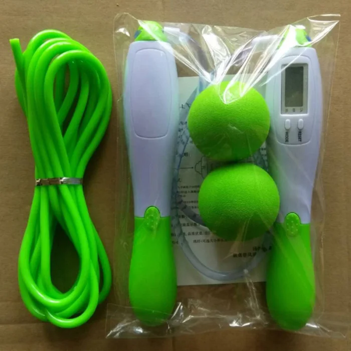 4. Простота в использовании: Скакалка имеет встроенный счетчик на правой ручке, который поможет вам знать, сколько прыжков вам нужно для каждой цели, такой как потеря веса, сжигание жира.