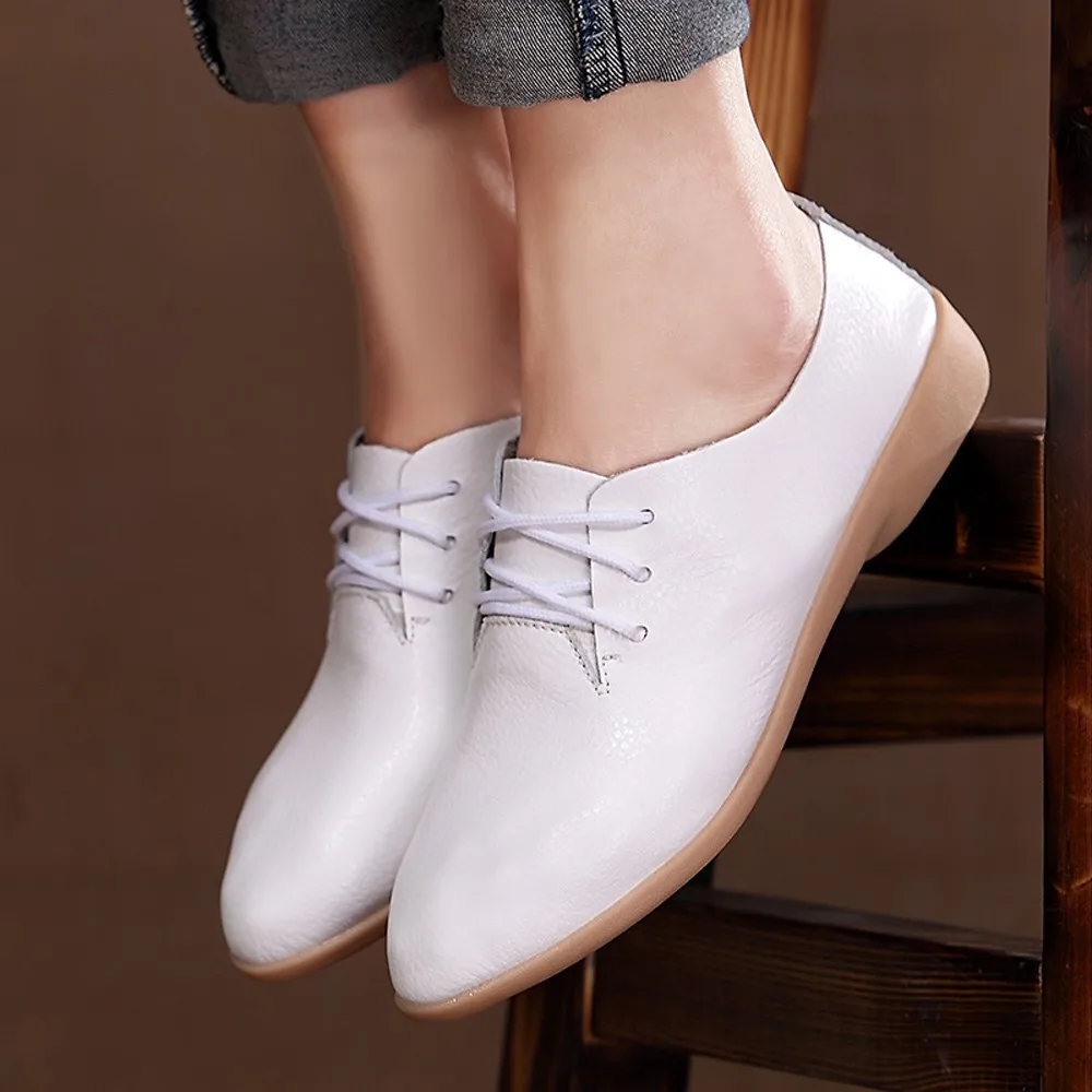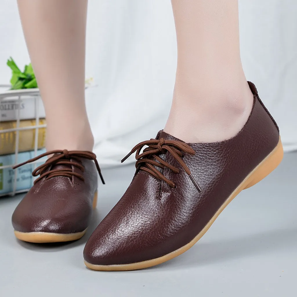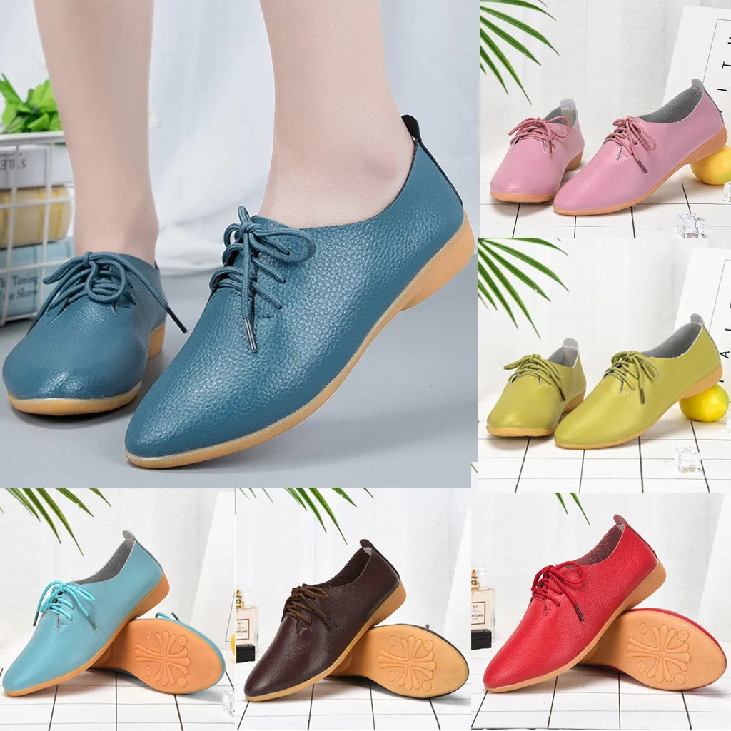 Женская модная однотонная удобная повседневная обувь на шнуровке с острым носком