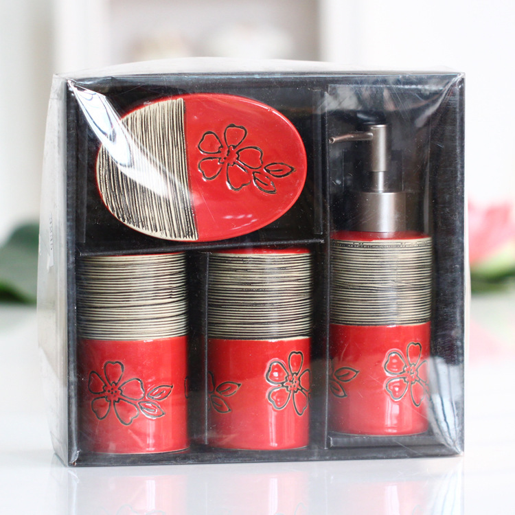 Набор из четырех частей ванной (одна бутылка для жидкости + одна зубная щетка + одна чашка + одна Коробка для мыла)