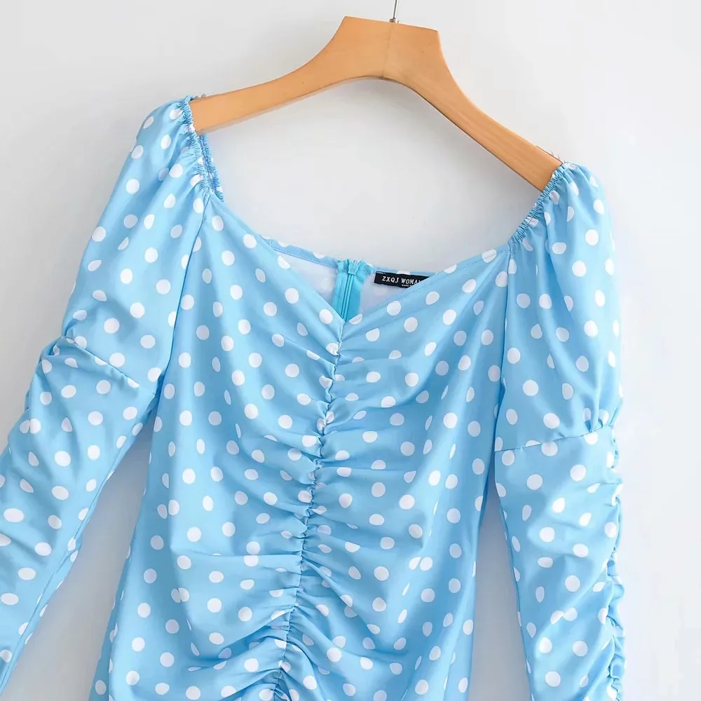 Женские вечерние платья с принтом в горошек, облегающие платья с длинными рукавами, женские вечерние платья, богемное пляжное облегающее платье, синее платье, Vestidos