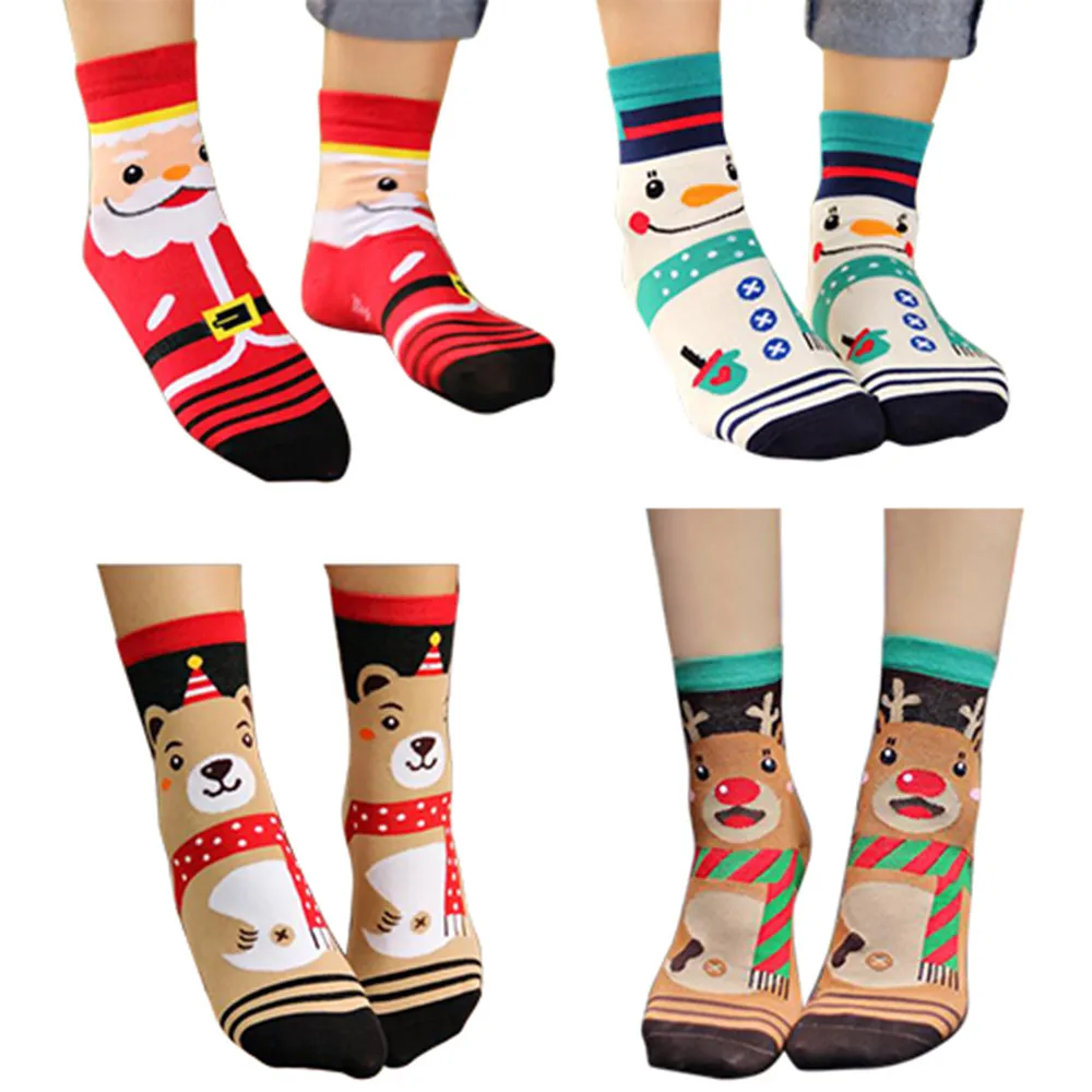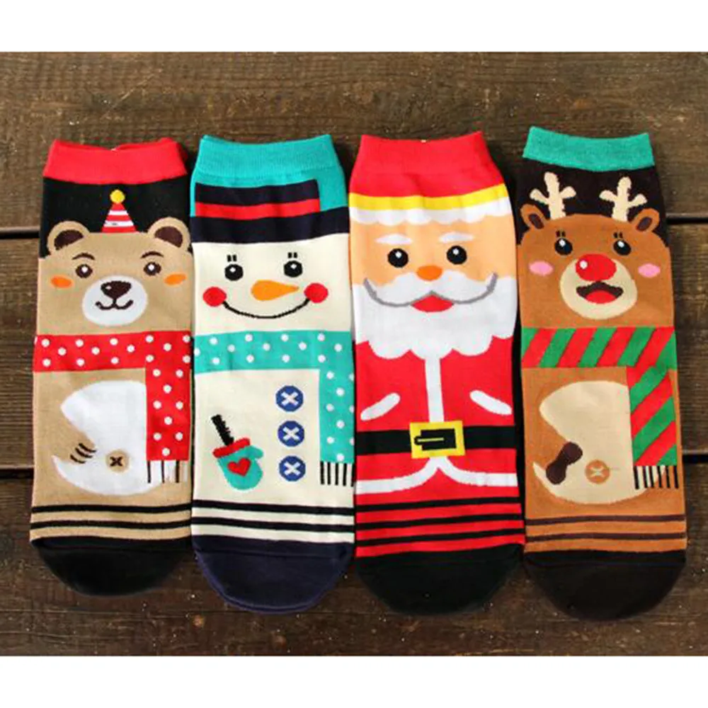 4 шт мультфильм Санта Клаус Снеговик маленький медведь лося носки женские хлопковые носки для пола