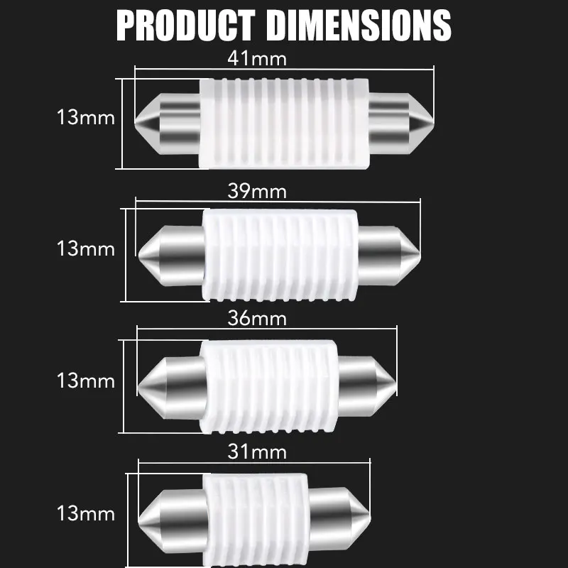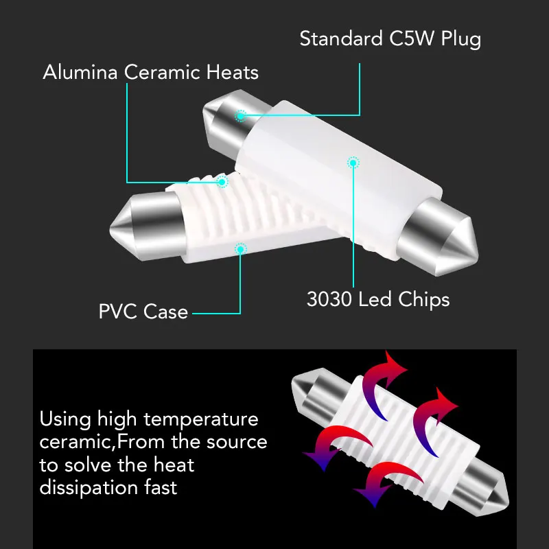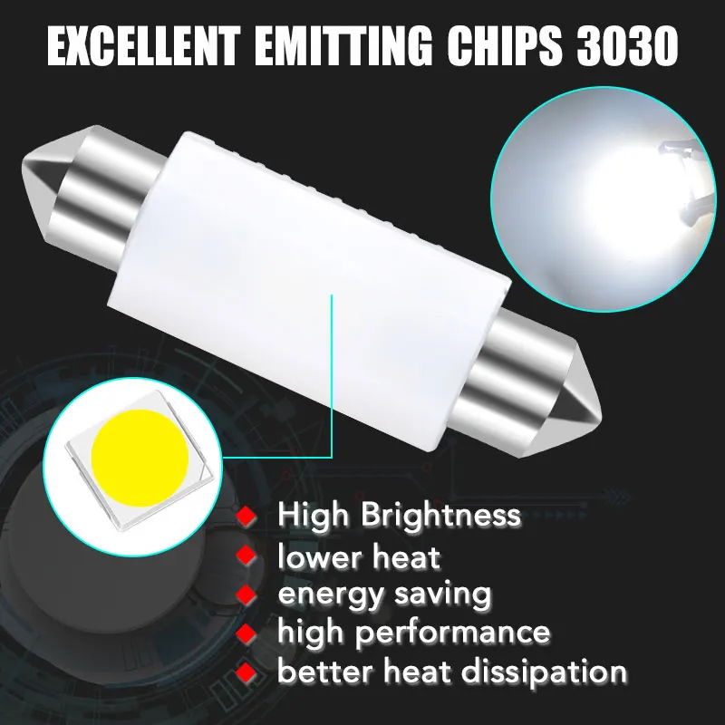 Технические характеристики: Название: C5W светодиодный просвет светильник Тип разъема: Festoon-31mm/36 мм/39 мм/41 мм Светодиодный чип: 3030 SMD светодиодный чип Срок службы: 65000 часов. V Напряжение: 12 В постоянного тока. Гарантия: 1 год. Цвет: белый Применение: Супер белые светодиодные лампы для интерьера (карта, купол, грузовой, любезно) светильник номерного знака, светильник, светильник, сигнал поворота светильник Боковой габаритный фонарь, светильник Посылка включает в себя: 2 шт. C5W светодиодный светильникПоследние несколько лет часто пользуюсь услугами этой компании, частенько делаю заказы, для дома, для детей и для себя любимой, и... Читать отзыв полностью...