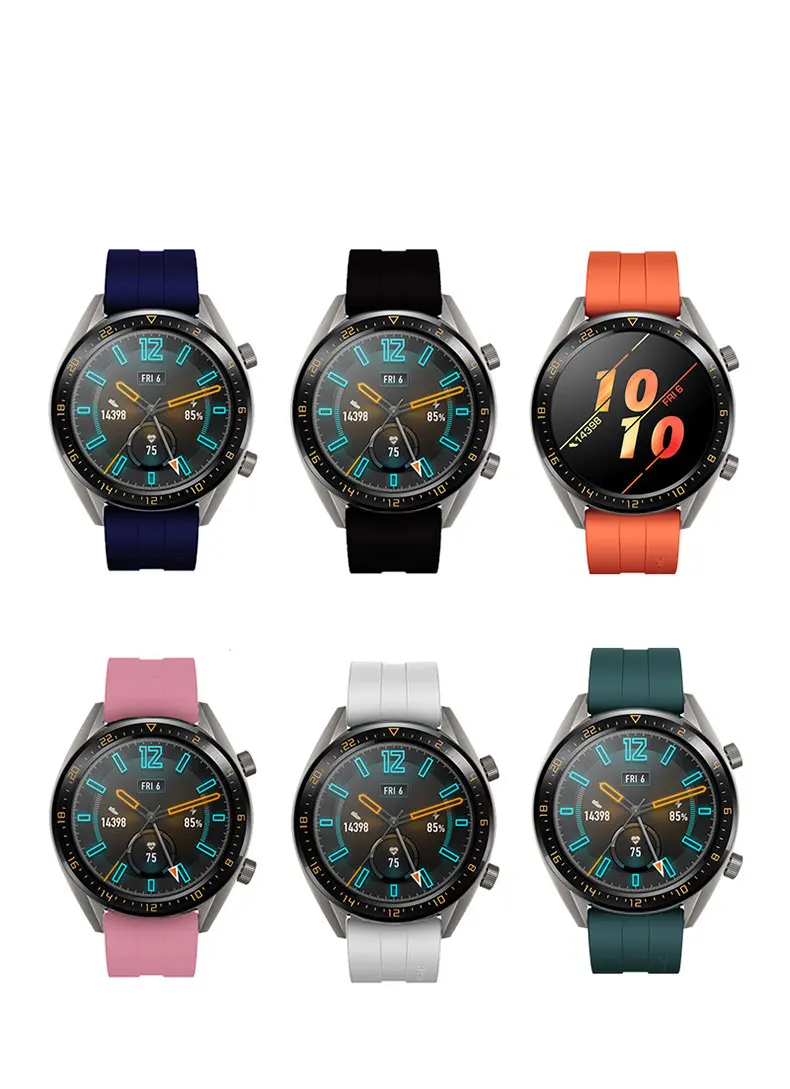 Особенности: 1. Высокое качество и мягкость умеренные, они очень удобные. 2. Он изготовлен из компрессионного формования, поэтому он прочный и долговечный. 3. Модели для выбора: 22 мм для Huawei Watch GT Active/элегантный, для Honor Magic Watch /samsung gear S3/Samsung galaxy watch active 46 мм 4. Размер может быть скорректирован в соответствии с запястьем каждого.