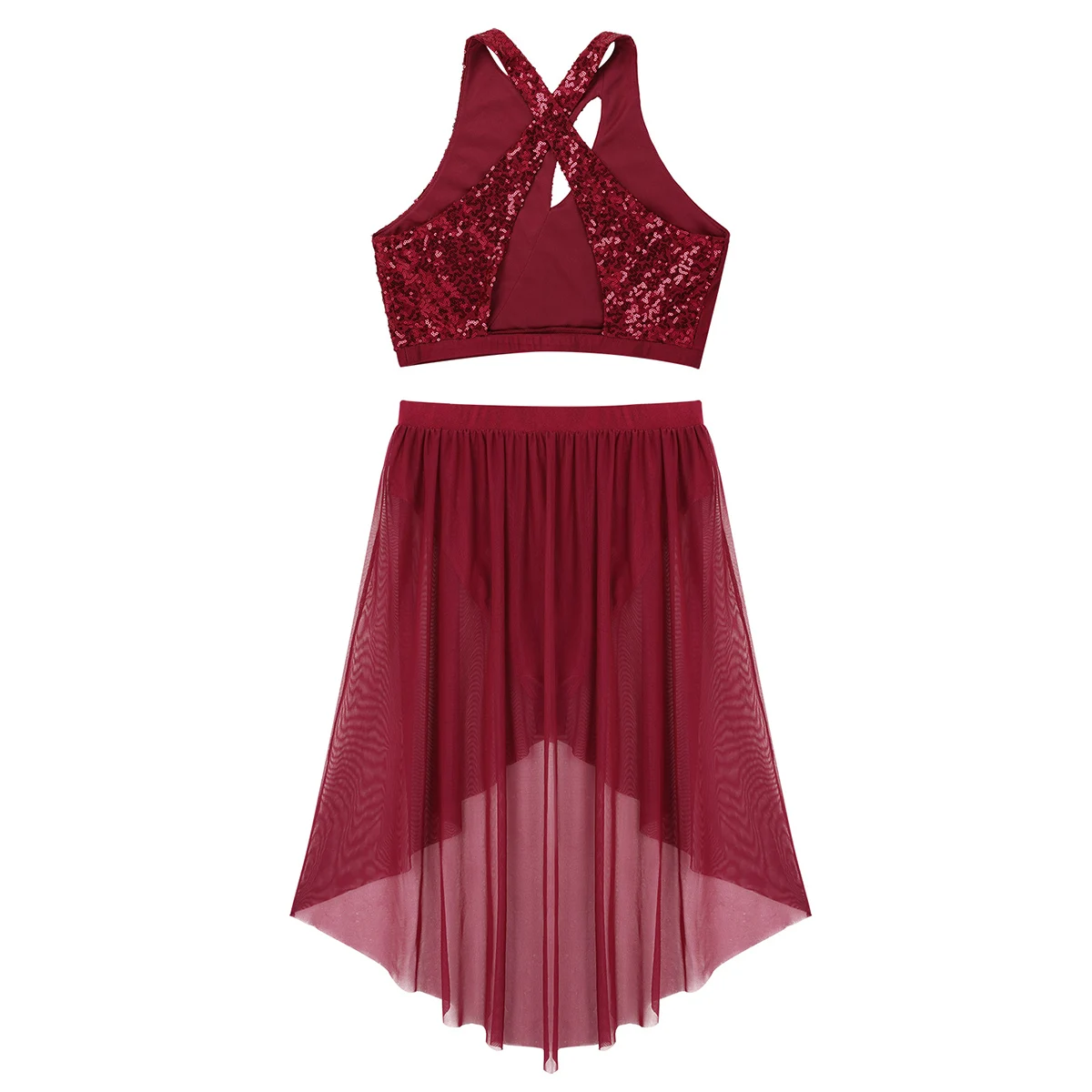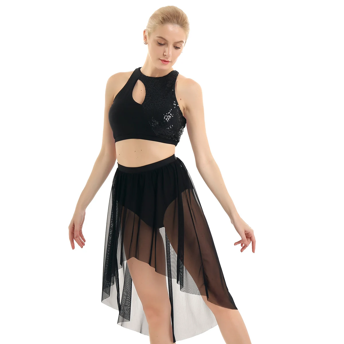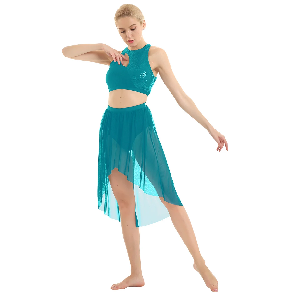 Женский костюм для латинских танцев для взрослых из 2 предметов; Современный Лирический танцевальный костюм; Хорошо тянущийся, затягивающийся.