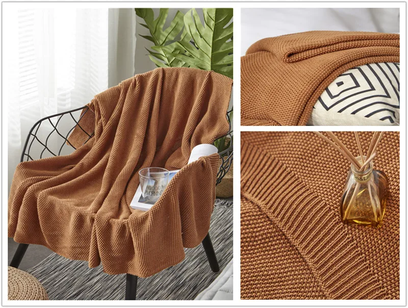 Обратите внимание: из-за большой эластичности вязаного одеяла возможна погрешность в 5-10 см для ручного измерения и небольшая разница в цвете в интернет-магазине. Материал: хлопок/акрил. Размер стрейч: 80x135 см; 430 г 130x150 см, 800 г Цвета: Доступно 9 цветов, как показано на картинке. Особенности: * Это одеяло идеально подходит для всех сезонов и делает его отличным дополнением к любой гостиной или спальне. * Трикотаж из мягкого хлопка. Экологически чистый и приятный для кожи. * Машинная стирка в холодной воде, деликатный цикл, только не хлорный отбеливатель при необходимости, сушить в стиральной машине, не гладить.