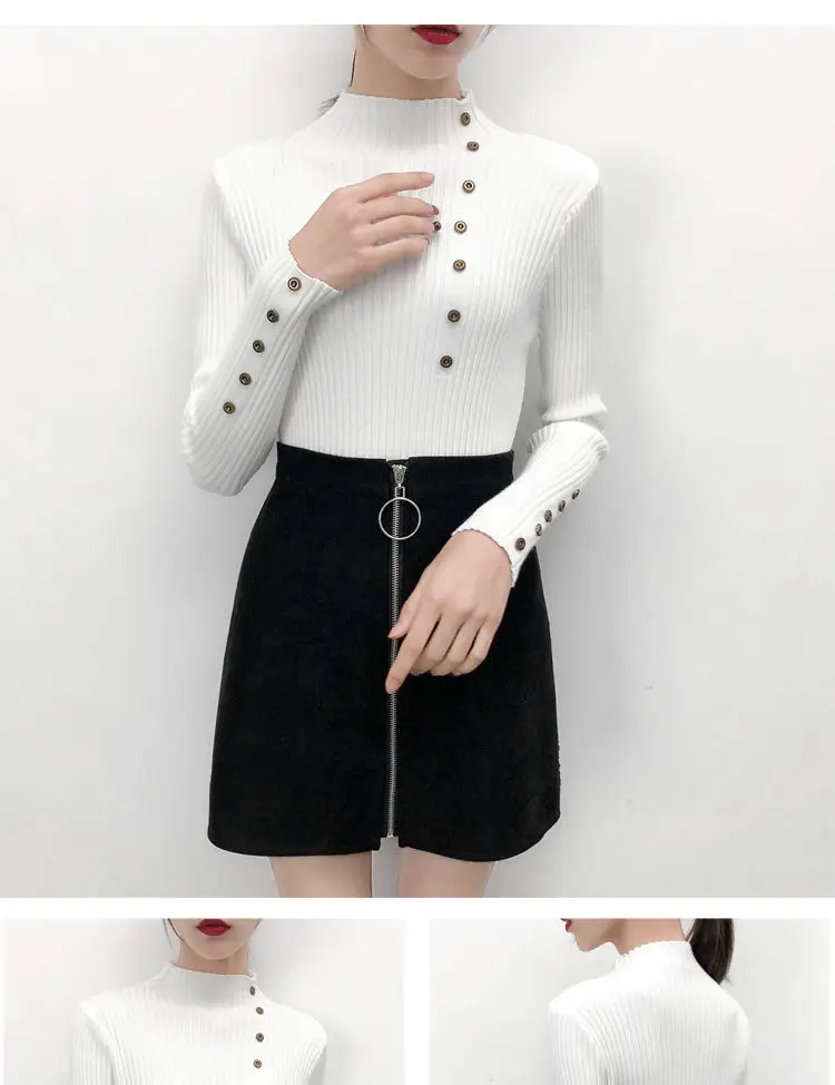 Повседневный осенне-зимний женский толстый свитер, пуловеры с длинным рукавом и пуговицами, с круглым вырезом, шикарный свитер, женский тонкий вязаный Топ, мягкий джемпер