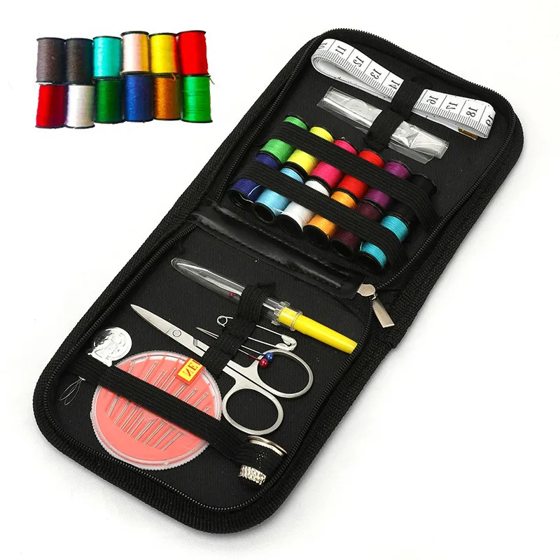 А Посылка включает в себя: 1 * посылка для хранения игл и ниток 12 * Различные цвета резьбы катушки 2 * шпильки 1 * наперстки 2 * иглы винторезный станок 1 * измерительная лента 1 * ножницы 16 * ручные швейные иглы 3 * белые пуговицы 1 * Вспарыватель швов 2 * Металлическая пуговица