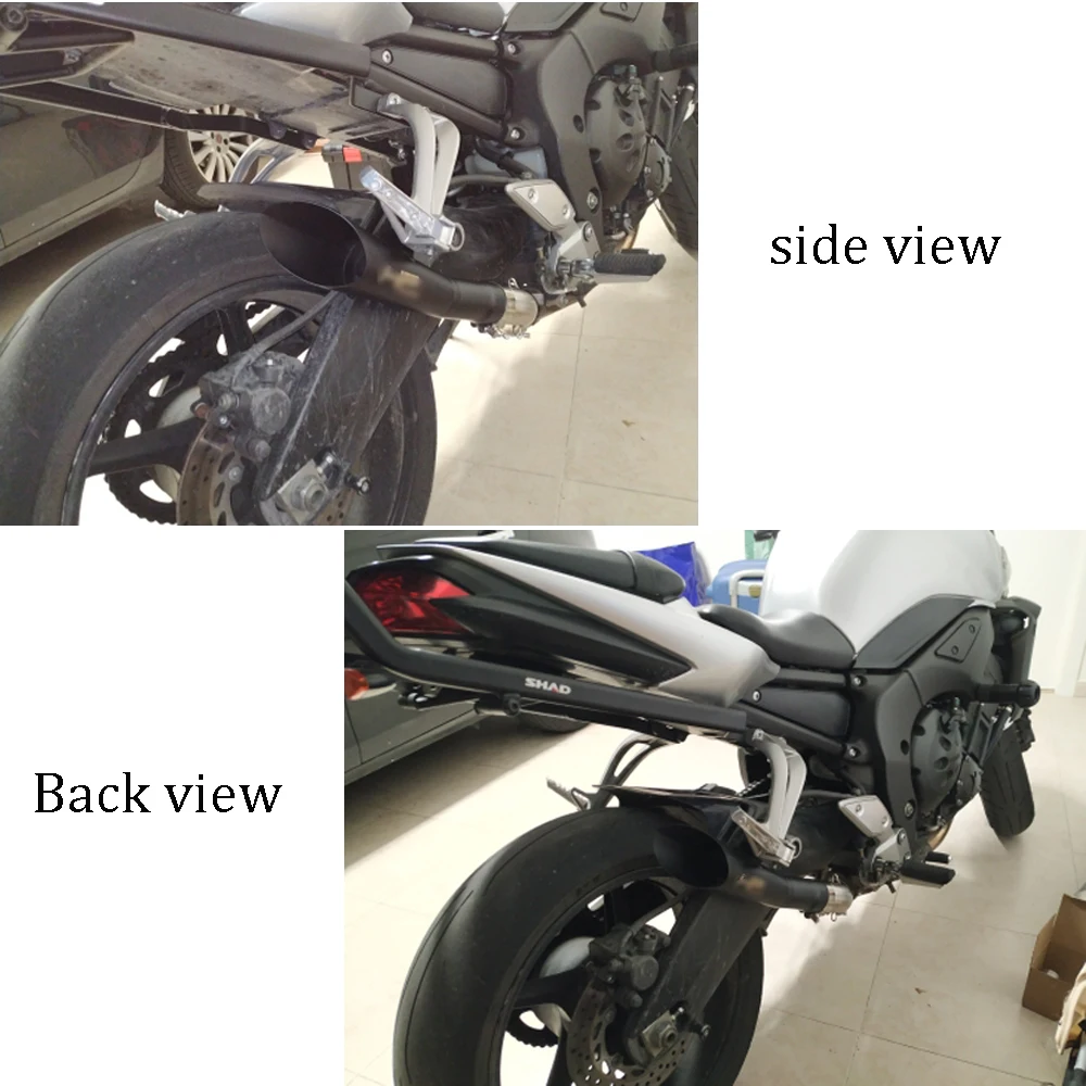 Easy installation. Material: Stainless Steel Color:black Sound Level: Aggressive Connection Inlet Diameter:51mm Fitment: Perfect for Yamaha YZF R6 (slip on) Fit for most of motorcycle(38~51mm) Note:The item needs welding.