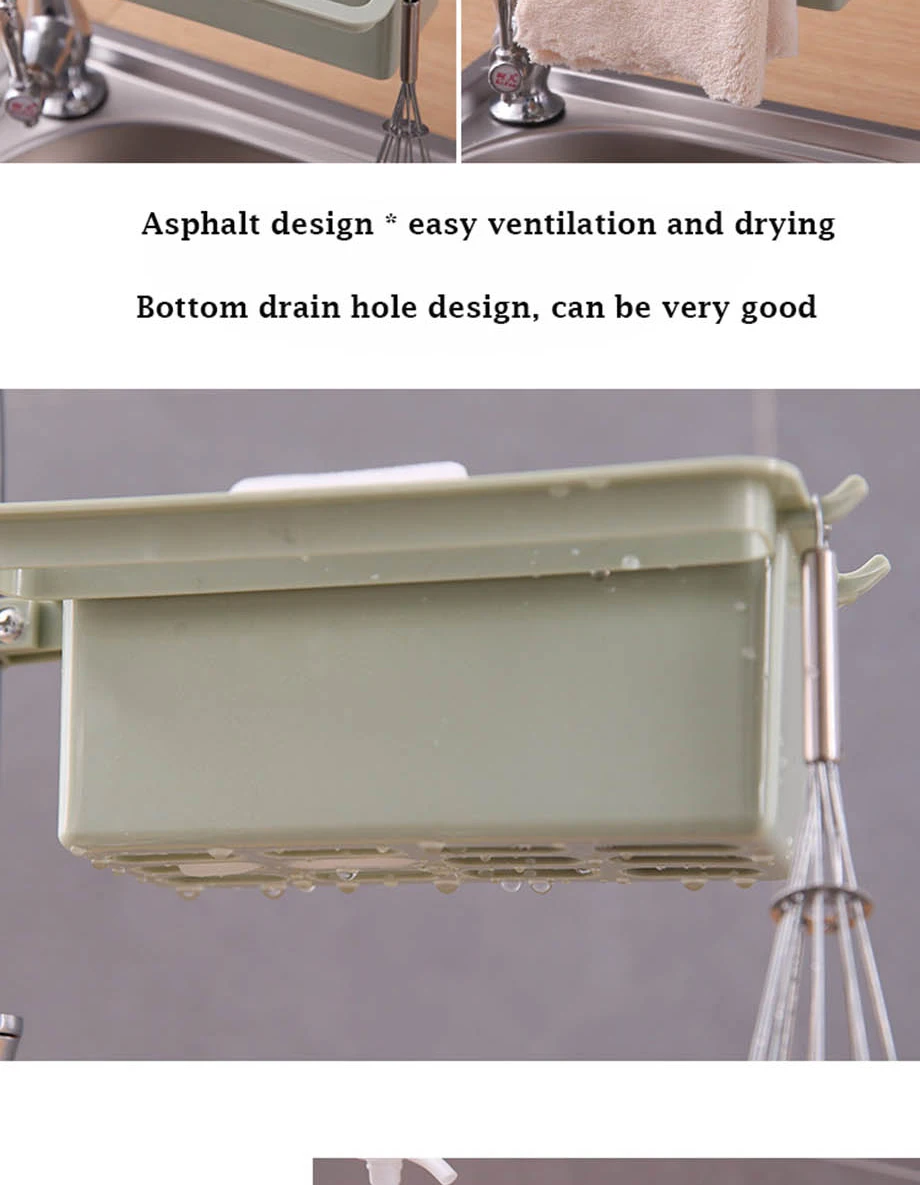 Характеристика: Размеры: 17,5*10,5*6,5*2 см Материал: пластик Цвет: розовый, зеленый, синий, серый Классификация полки: подвешивание Название: держатель губок на раковине, держатель для полотенец, дренаж для мыла, органайзер для кухонной раковины, стойка для хранения губок