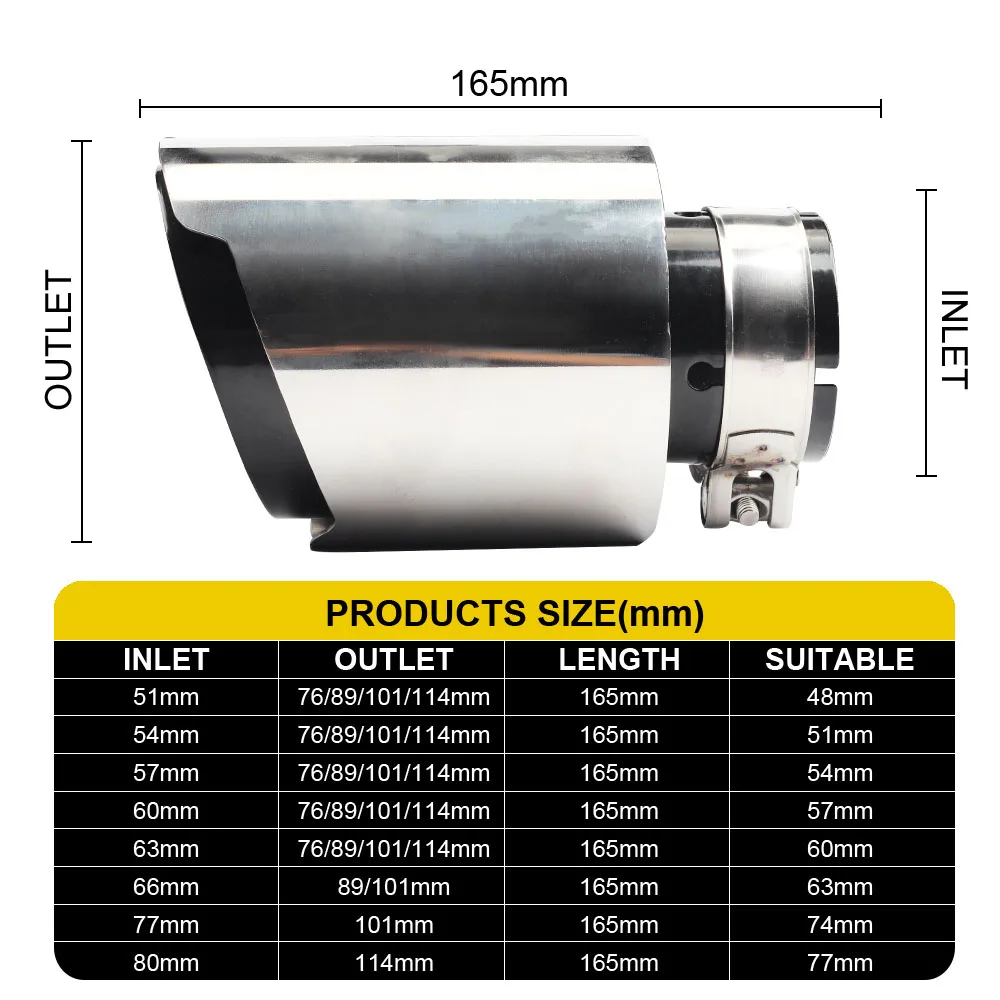 ♦ Универсальная модификация: покрытие 99% размера выхлопной трубы на рынке.