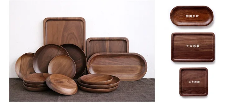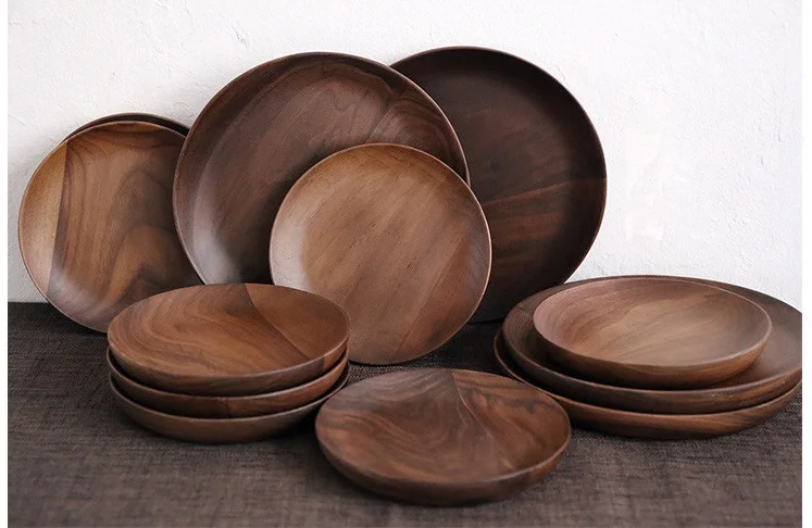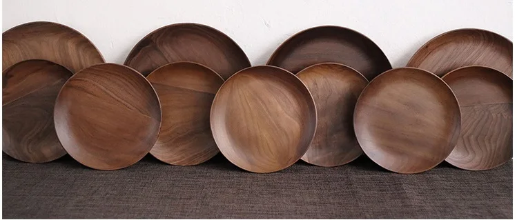 Японская черная ореховая круглая тарелка, творческая Фруктовая тарелка, деревянная тарелка, десертная тарелка, посуда