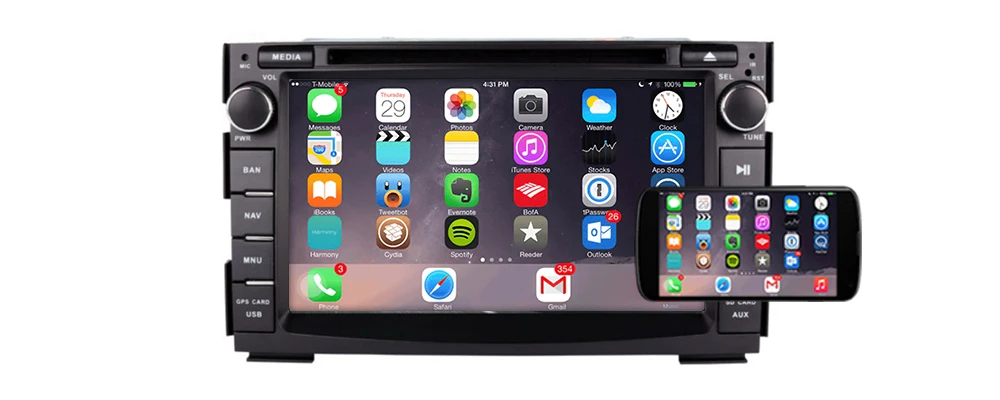 Поддержка проводной зеркальной связи с android телефоном и iPhone