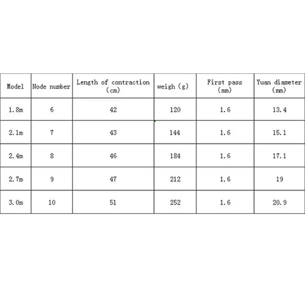 Длина: 1,8 м, 2,1 м, 2,4 м, 2,7 м, 3,0 м;