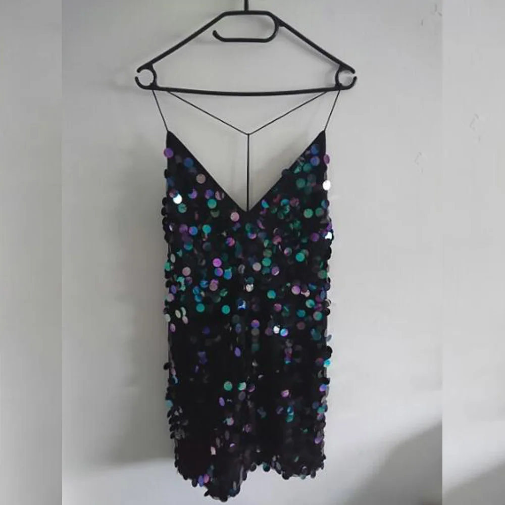 * Повседневное платье; Цвет: насыщенный (как на фотографии) * Летнее платье Состояние: 100% новый бренд * Женское платье Описание: блестящий и воротником с цветочным узором клуб диско сексуальное платье с низким вырезом на спине, с блестками вечернее платье вечерние мини-платье без рукавов; Одежда для девочек; Vestido de Festa; Robe Abendkleid * Посылка: 1 * платье (аксессуары в комплект не входят)