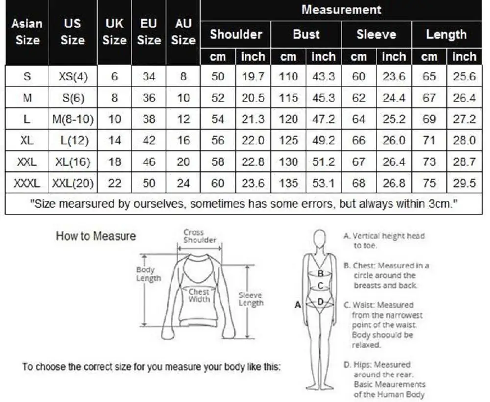 Size: There are 6 sizes (S/M/L/XL/XXL/3XL) available for the following listing. please allow 1-2cm differs due to manual measurement, thanks (All measurement in cm and please note 1cm=0.3937inch)