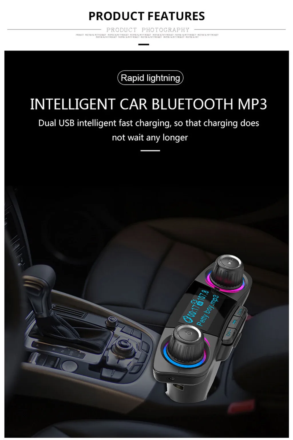 Автомобильный fm-передатчик BT, mp3-плеер, радиоадаптер с громкой связью, USB зарядное устройство