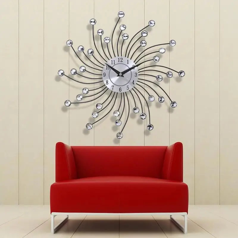 Настенные часы 33 см, в винтажном стиле, с металлическими кристаллами