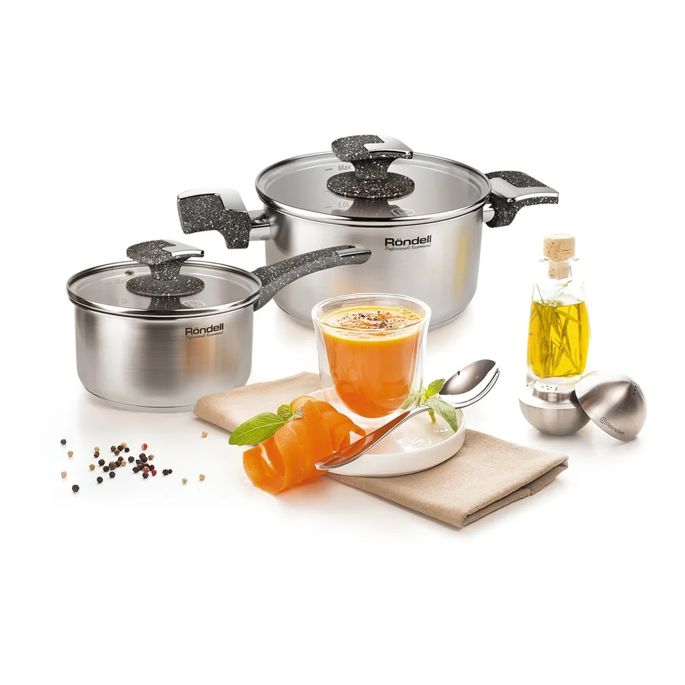 Функциональные свойства посуды традиционно на высоте: она изготовлена из высококачественной нержавеющей стали и имеет тройное вштампованное, а затем вплавленное дно, гарантирующее идеальное прогревание продуктов и безупречное приготовление любых блюд.