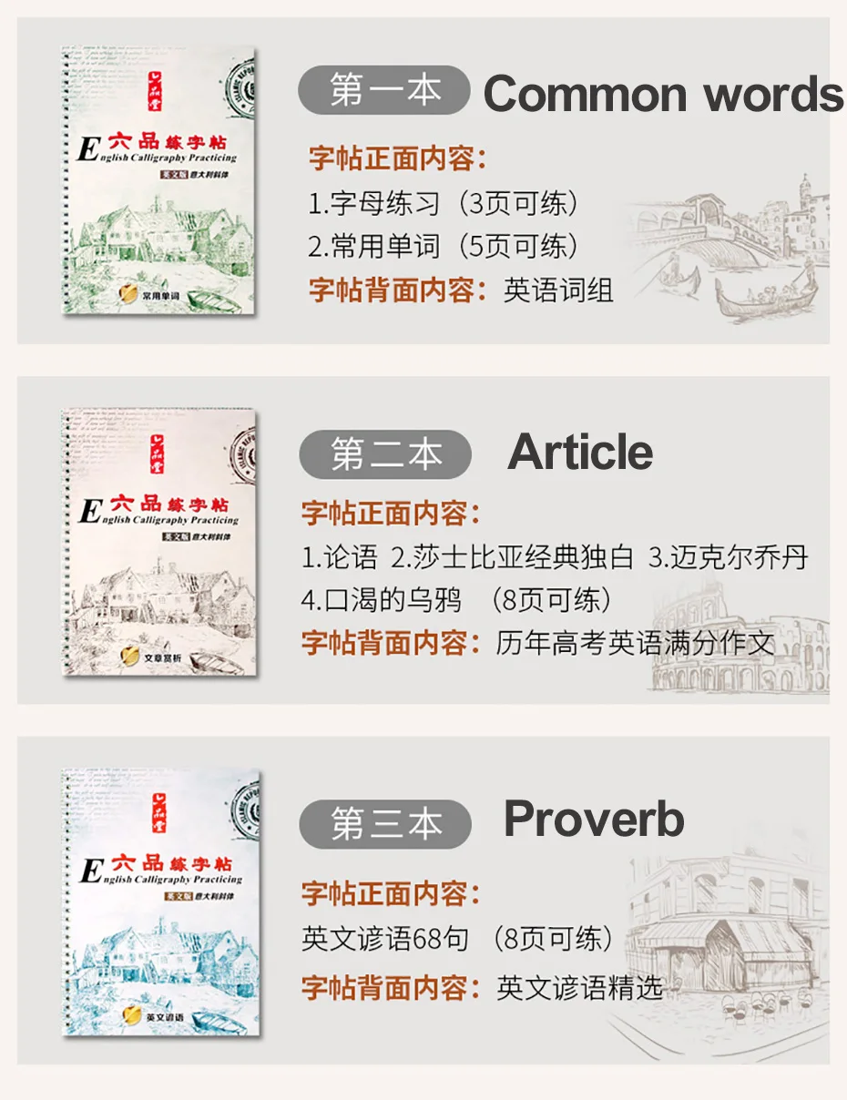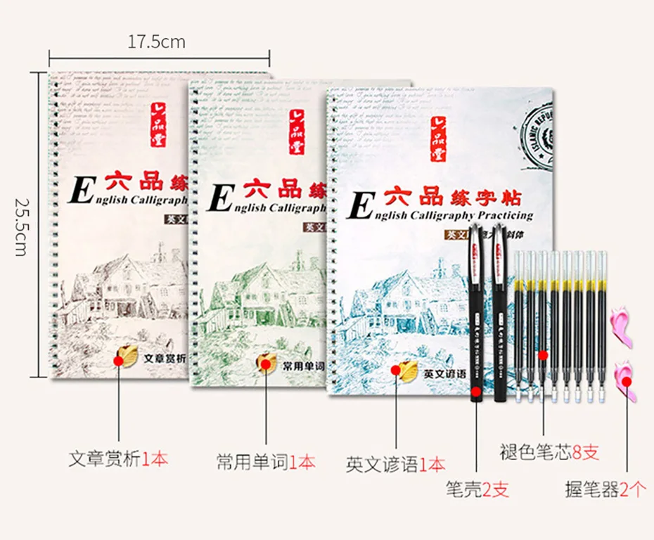 Liu Pin Tang, 3 шт., итальянский стиль, английский паз, каллиграфия, авторская книга для взрослых, книги для художественного письма, многоразовая стираемая ручка, учим слова