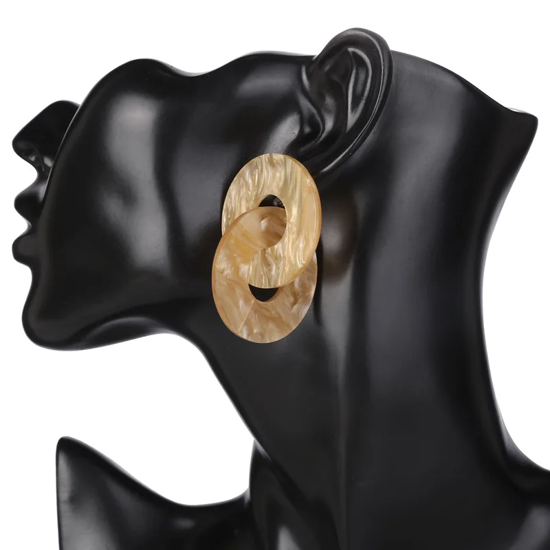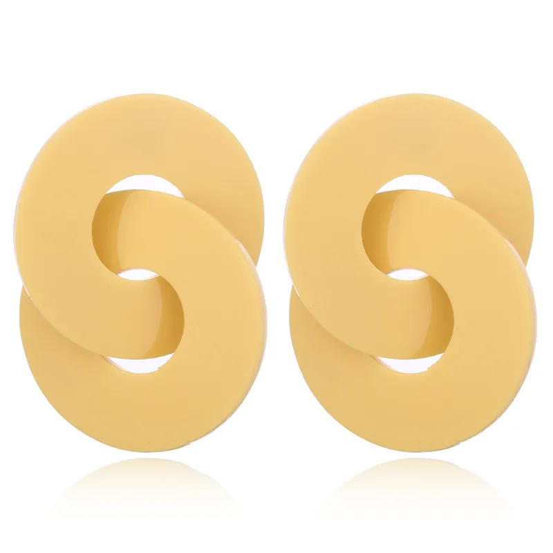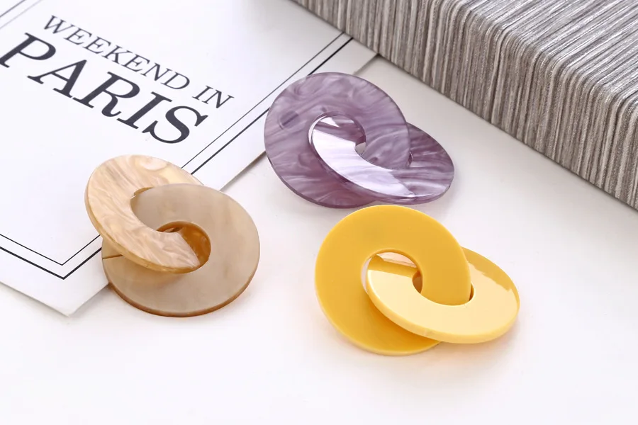 Желтые, фиолетовые, бежевые Акриловые Модные вязаные серьги с двойным кольцом для женщин и девочек, серьги из ацетатной смолы, ювелирные изделия, висячие серьги