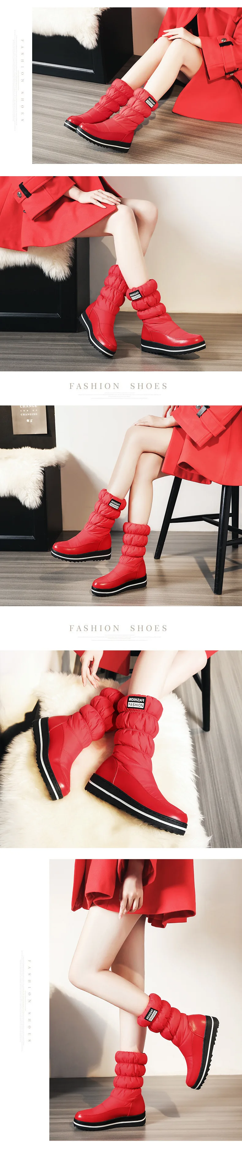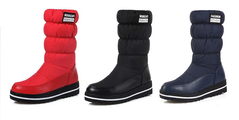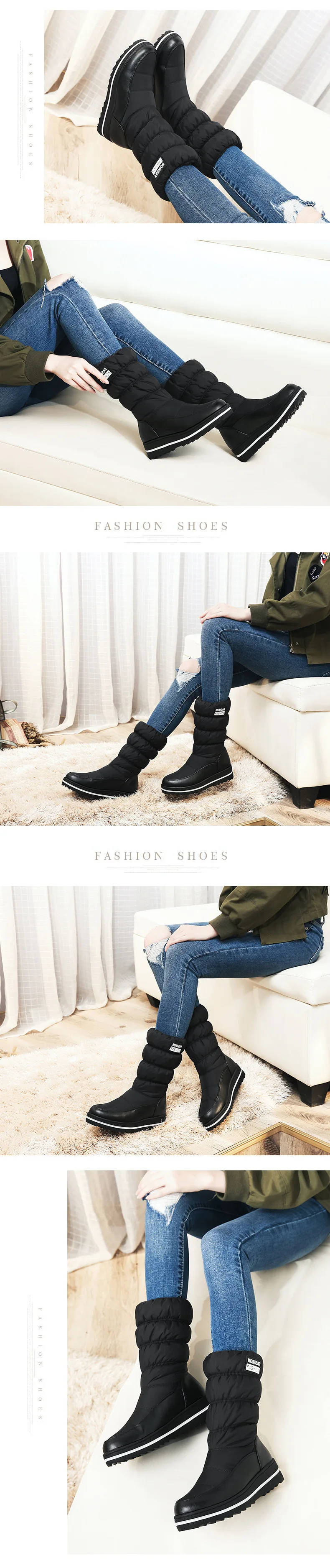 Большие размеры; женские зимние сапоги; обувь на платформе; женские сапоги до середины икры; теплые зимние сапоги на пуху; хлопковая обувь; водонепроницаемые женские ботинки