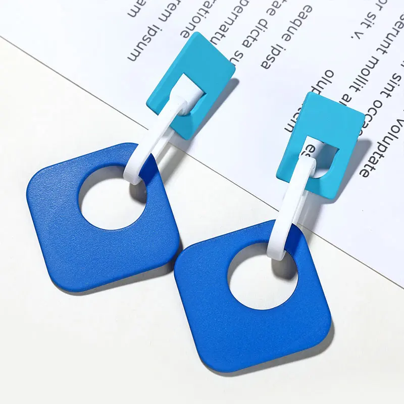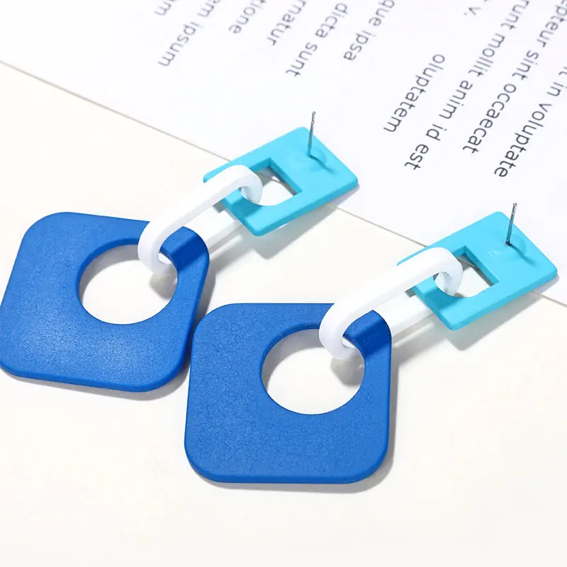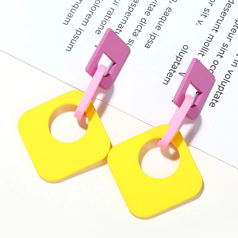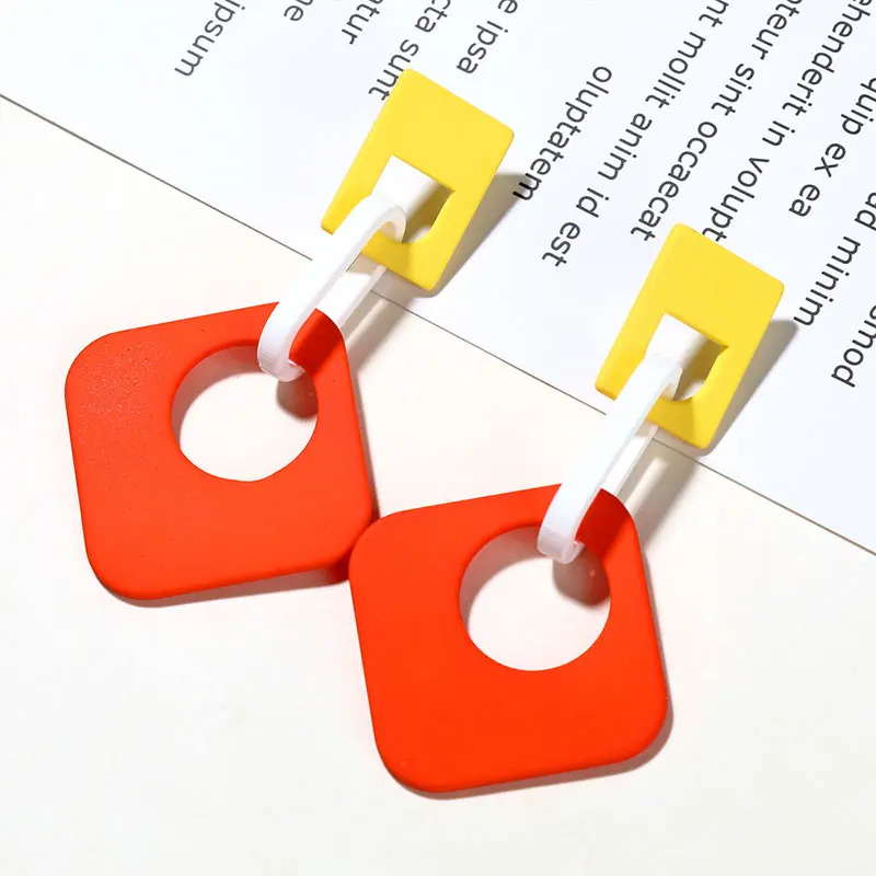 Желтый, красный, синий цвета, новые летние туфли-лодочки ярких Цвет винтажные геометрические формы прямоугольная акриловая Пряжка длинные свисающие серьги для женщин, ювелирное изделие для девочек
