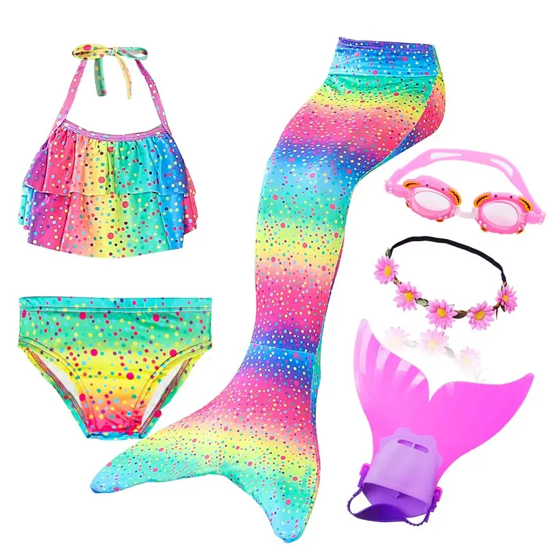 Новый детский купальник Русалочки с гирляндой, моноласт, купальник-бикини, купальный костюм