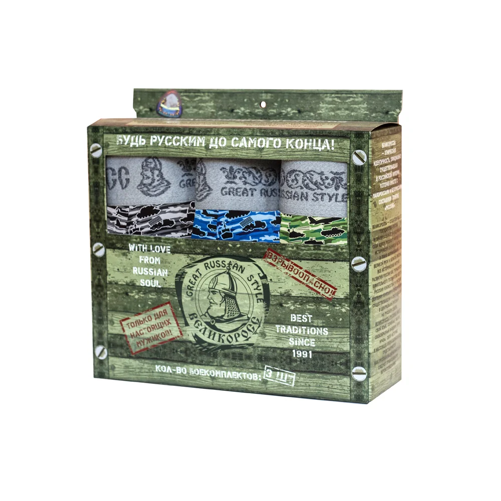 Комплект из трех трусов выполненных в военной тематике от компании Великоросс.