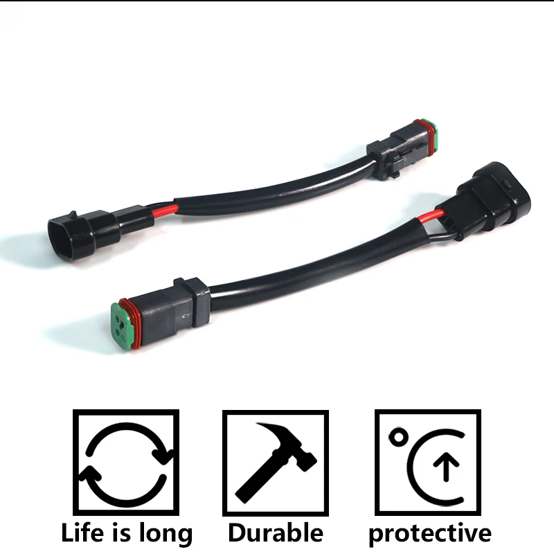 Количество: 1 пара (прибл. Длина: 7 ") с водонепроницаемыми адаптерами IP68 Deutsch Трансформируется из H11/H8/H9 лампа Разъем для Deutsch DT разъемы 2-контактный разъем, совместим с большинством LED pod огни, планки со светодиодными лампами на рынке, в том числе жесткая, р/у, Putco, видение х и т. д Идеально подходит для преобразования обычных противотуманных фар в LED pod свет, LED рабочий свет или LED свет бар без изменения не требуется Не требуется резка или Сращивание-просто подключите новые расширения, и все готово!