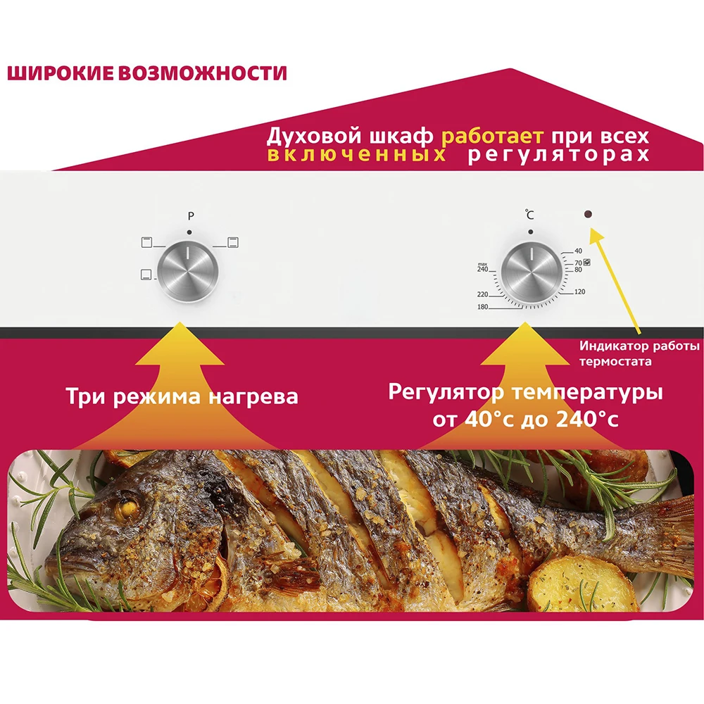 Характеристики Электрический духовой шкаф Simfer B6EW04070, 3 режима работы