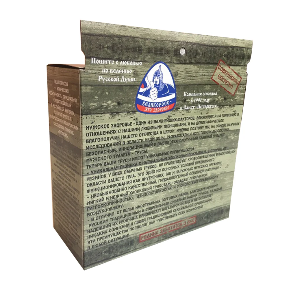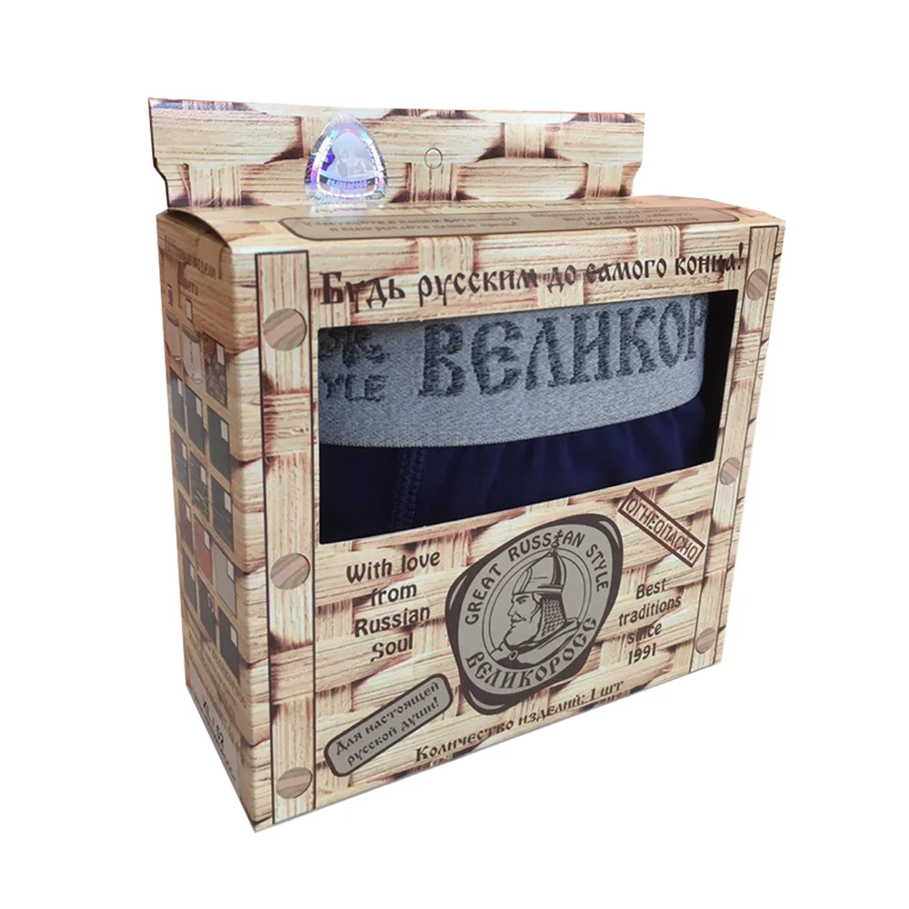 Боксеры тоже очень похожи на семейные трусы, они очень удобны для ношения под джинсами так как плотно облегают тело, но при этом так же нигде ничего не стягивают и дают телу дышать. В наших боксерах с русской символикой мужчины будут выглядеть очень брутально и сексуально! Наши боксеры - для настоящих русских мужиков!