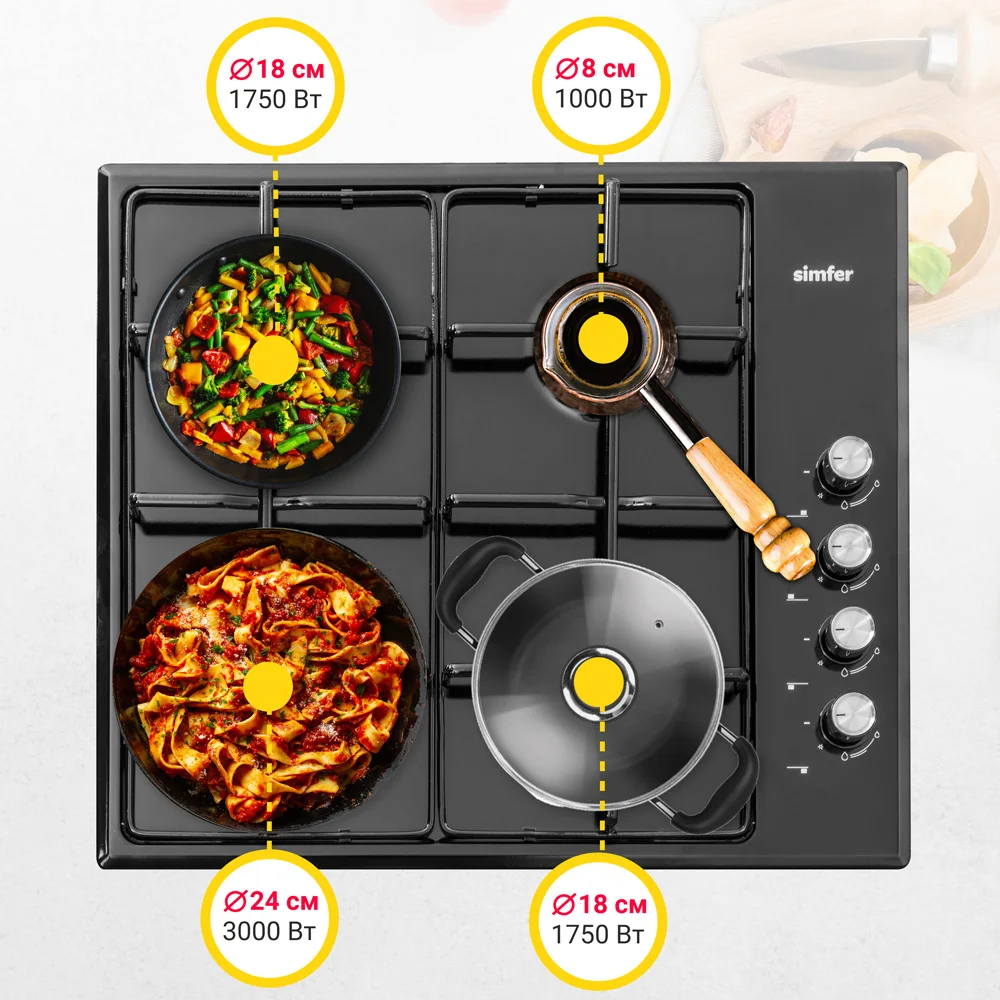 Встраиваемый набор Simfer - комплект, состоящий из Газовой варочной поверхности и электрического духового шкафа, созданный для того, чтобы облегчить жизнь каждой хозяйке в приготовлении самых разнообразных блюд. И для тех, кто мечтает о технике, гармонично сочетающейся с элементами кухни. Для того, чтобы воплотить свои кулинарные фантазии предусмотрены четыре газовые конфорки разные по диаметру и мощности пламени в них, располагающиеся на рабочей поверхности из эмалированной стали. Удобное управление и функция электроподжиг значительно упрощает работу с панелью. А разнообразные режимы в духовом шкафу дадут вам возможность выбора оптимального способа приготовления для каждого блюда. Контролировать этот процесс, благодаря освещению камеры, вы сможете, не открывая дверцу духовки. Готовьте вкусную еду и проводите семейные ужины в комфортной и уютной обстановке!