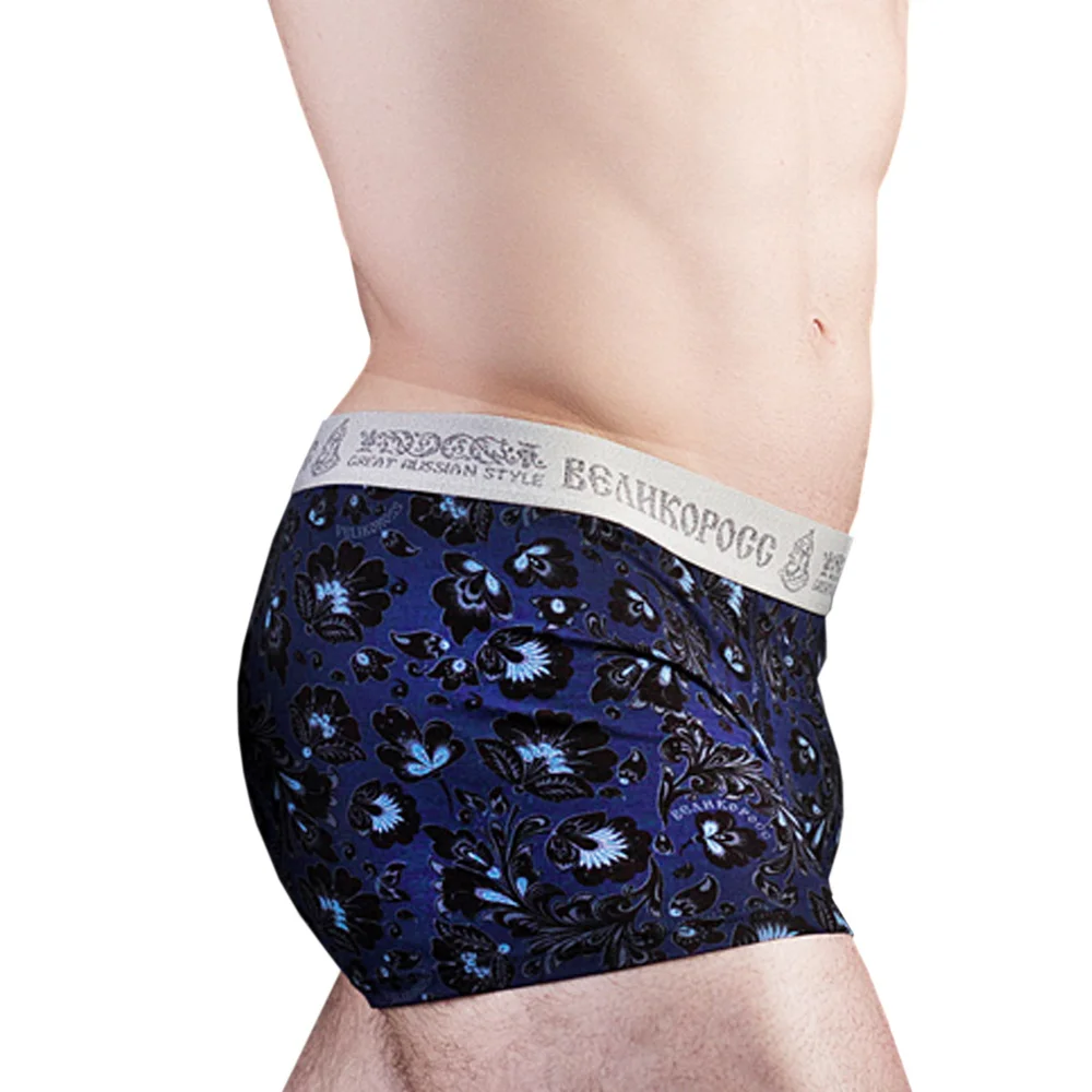 Трусы с цветами в орнаменте, с темно-синей и серой расцветкой подходят для более сдержанных мужчин, положительные качества которых раскрываются не сразу, а постепенно…