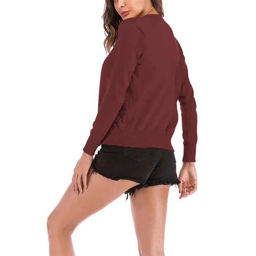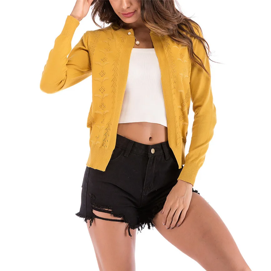 Женский ажурный кардиган, однотонный вязаный кардиган с круглым вырезом и жемчужными пуговицами