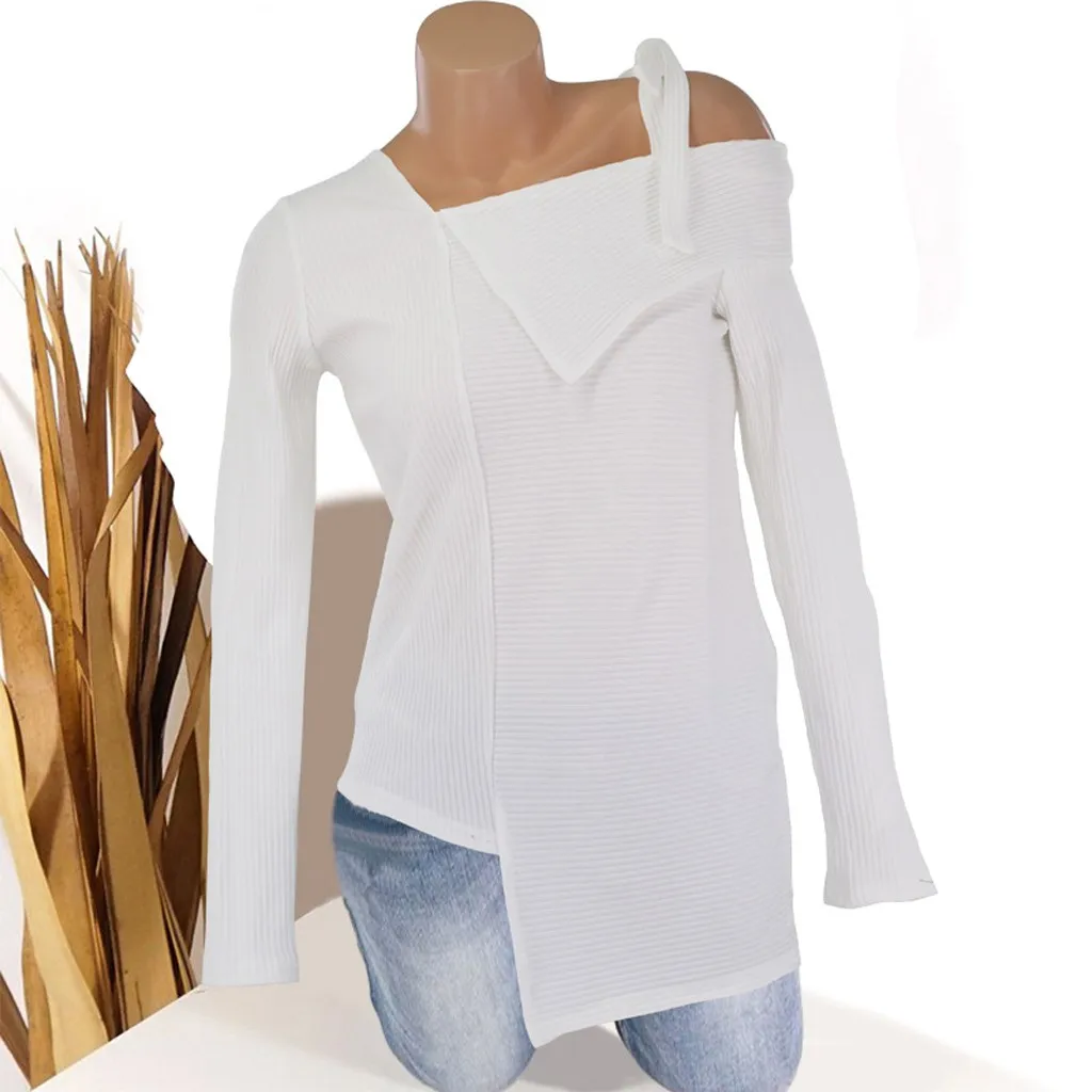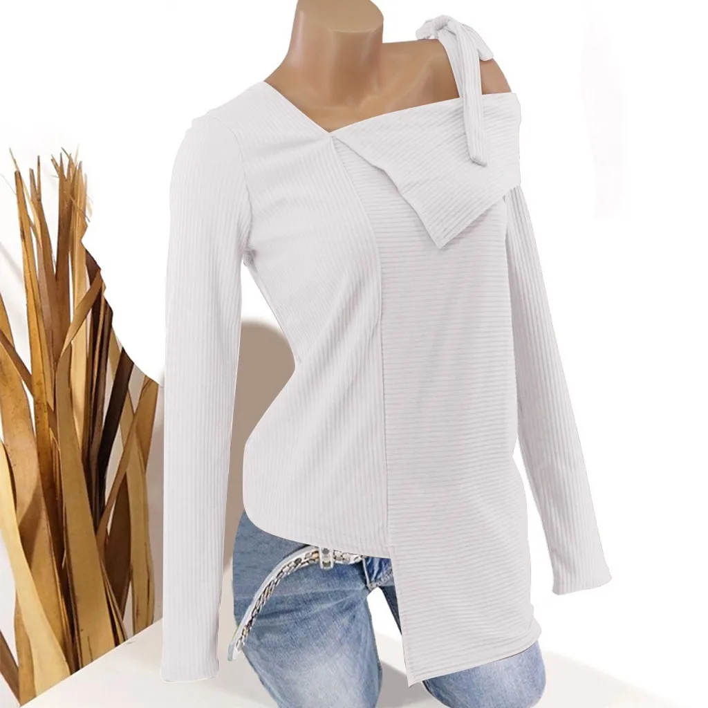 Модная женская Повседневная Блузка с длинным рукавом и бантом; милый пуловер; свитер; рубашки; топы