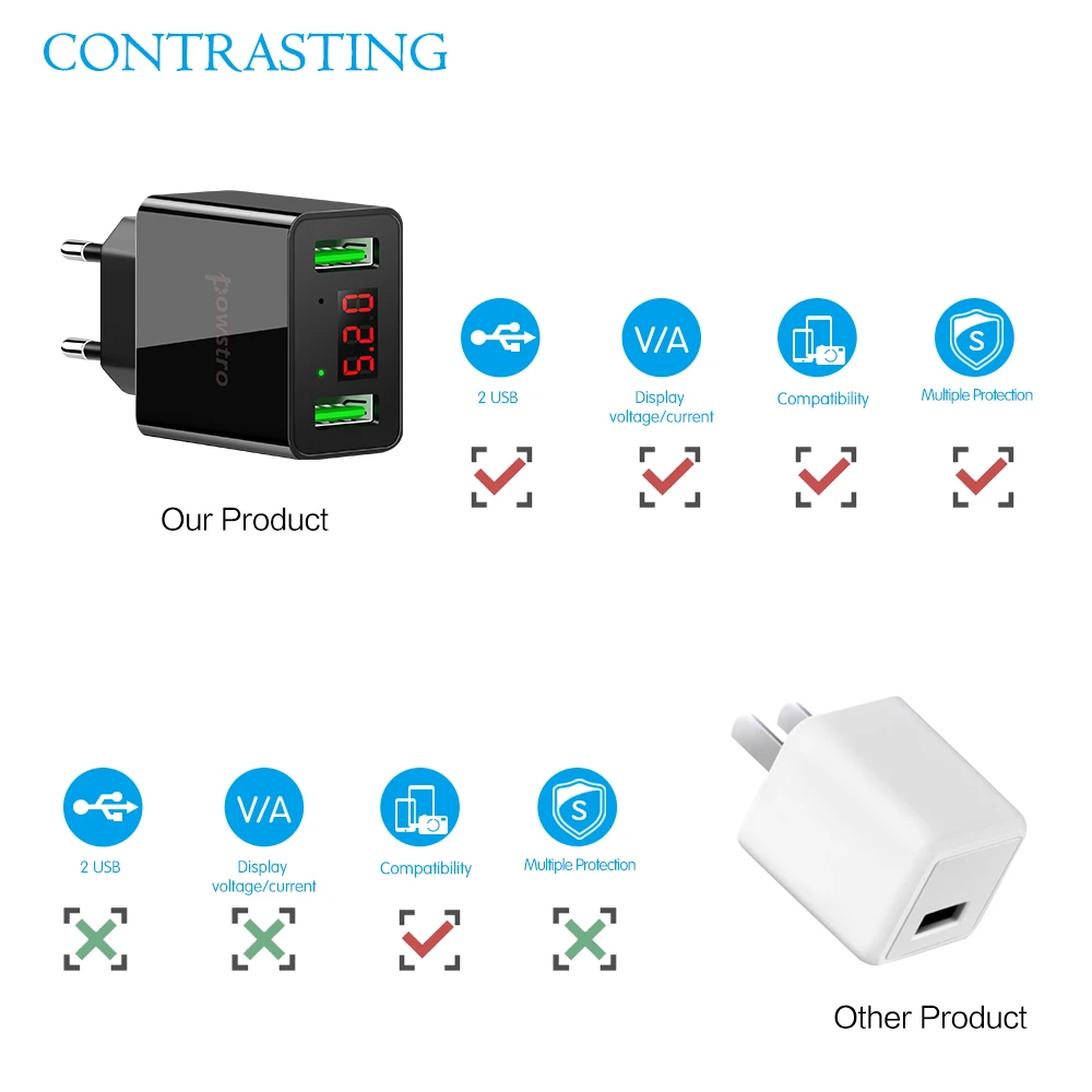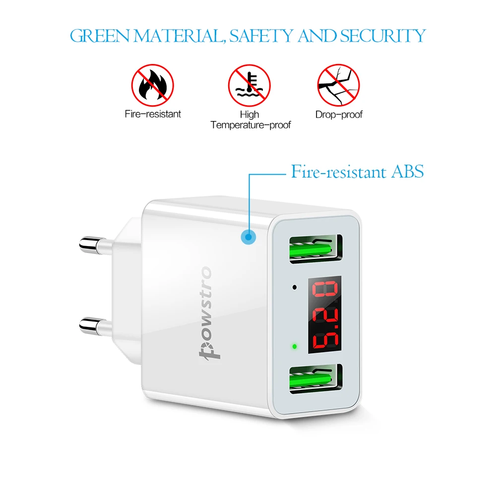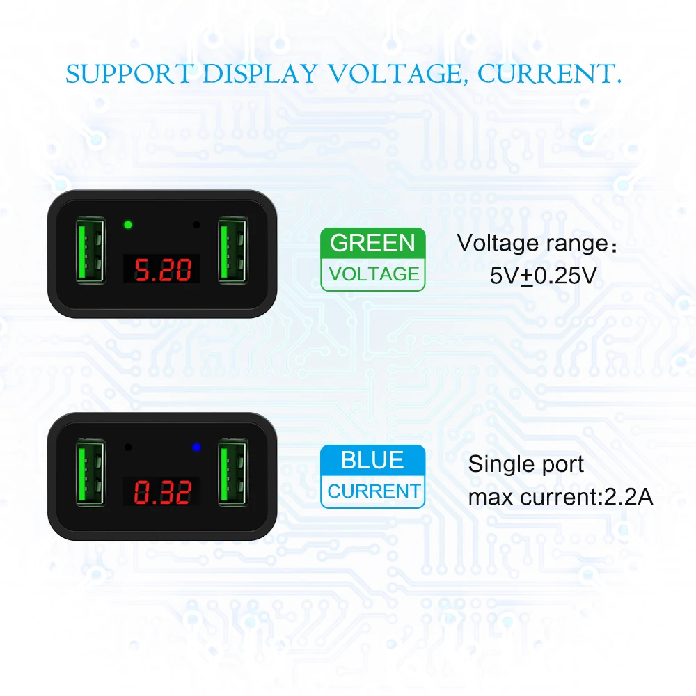 Два порта USB с быстрой зарядкой. Устройства в то же время загружают максимальный поддерживающий ток 2.2A, скорость зарядки может быть увеличена на 30%, обеспечивая быструю зарядку. 2 порта питания USB заряжают до 2 мобильных устройств одновременно через только одну розетку.