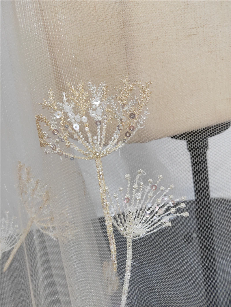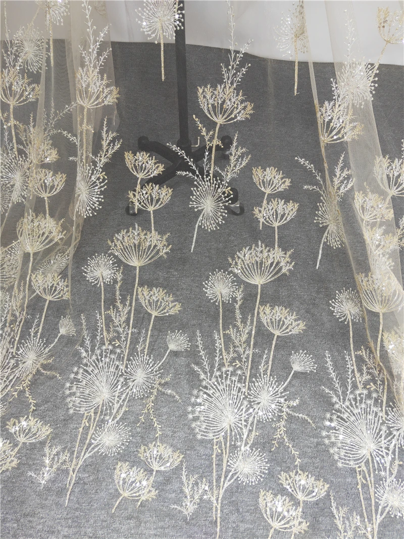 1 ярд Роскошный Золотой шарик Одуванчик esequin тюль вышивка кружевная ткань haute ткань от-кутюр кружева DIY Ремесло Свадьба 135 см в ширину
