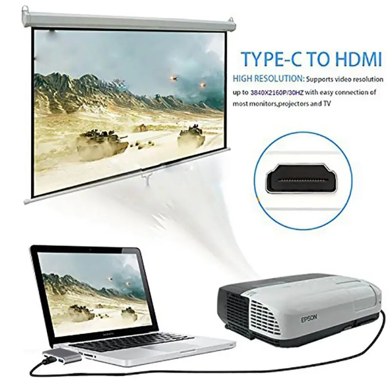 Характеристики: 1. Расширяет порты телефона или других устройств в выходной порт для HDMI, порт USB 3,0, порт USB-C для зарядки. 2. Три порта могут работать одновременно. Легко расширить USB c устройства и выполнить ваше ежедневное использование. Не требуется никакого программного обеспечения, драйверов или сложного процесса установки. 3. Расширьте дисплей вашего телефона/ноутбука на телевизор, помогая вам наслаждаться красивыми фотографиями и фотографиями с ваших портативных устройств. 4. Порт USB 3,0 обеспечивает максимальную скорость передачи данных до 5 Гбит/с, легко переносить hd-фильм за короткое время. 5. Поддерживает разрешение видео 4k и совместим с большинством HDTV, мониторов, проекторов и других устройств с портом для HDMI, обеспечивая яркое видео, Ультра HD, более четкое изображение и лучший вид без какой-либо тряски. Спецификация: Материал: алюминий размер: Approx.62x24x11mm/2.44x0.94x0.43 дюйма Тип: адаптер HDMI/конвертер Тема: дома Примечание: Из-за разницы в экране цвет может немного отличаться от того, что вы ожидаете, пожалуйста, позвольте ему упаковать включает: адаптер USB-C-1 шт. кабель Type-C-1 шт.