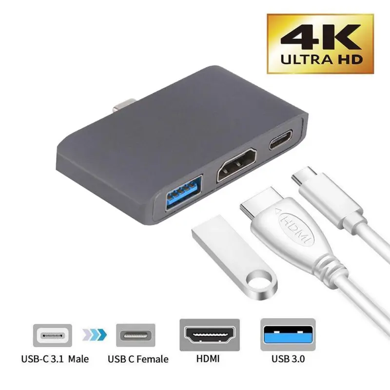 3-в-1 мульти Порты и разъёмы адаптер Тип C до 4K HDMI USB 3,1 3,0 QI Беспроводная зарядка Порты и разъёмы конвертер с USB-C мужского и женского кабеля