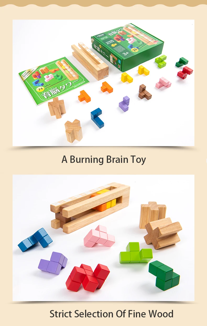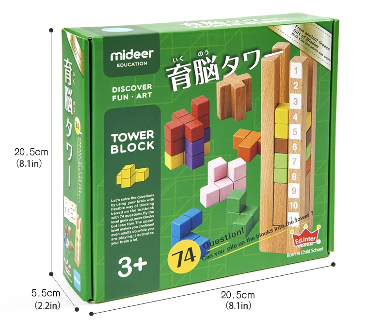 Material: Beech Packing Size: 20.5*20.5*5.5cm Suitable Age: over 5 years old Product Weight: 645g Product Specifications: Includes 1 log tower, 1 Chinese Textbook, 2 log blocks and 11 color blocks