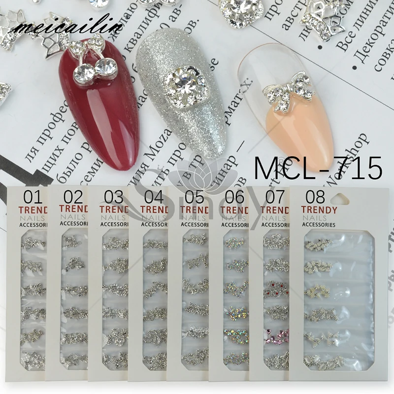 30 шт. AB прозрачные 3D Стразы для ногтей смешанные размеры галстуки-бабочки Корона Маникюр художественные украшения хрустальные украшения металлические шпильки