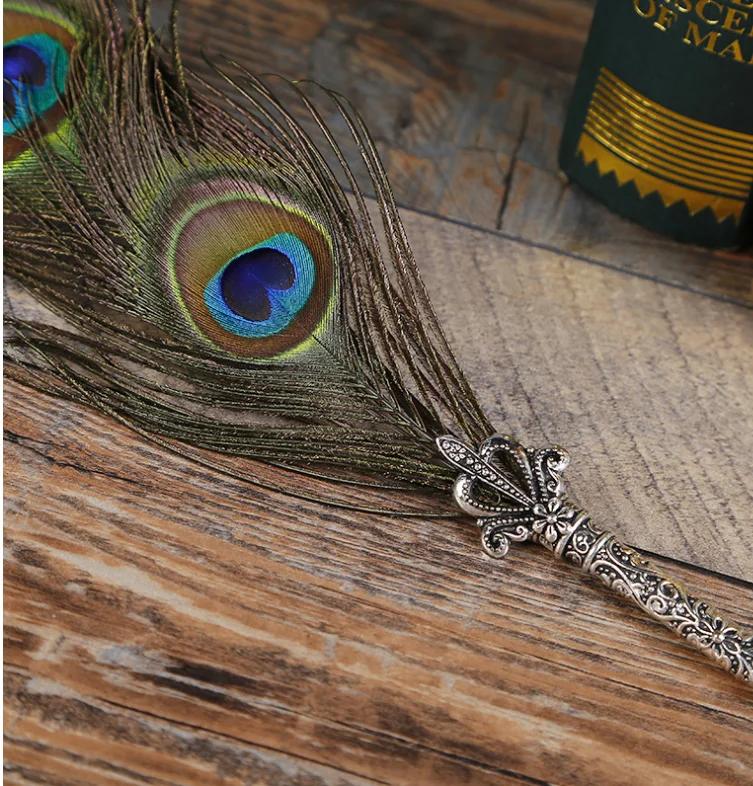 * Это перьевая ручка, изготовленная из натурального пера и сплава, элегантная, антикварная и уникальная. * Гладкое письмо, износостойкое и не легко повредить. * Легкий, очень удобно держать, очень удобно практиковаться в каллиграфии с ним.