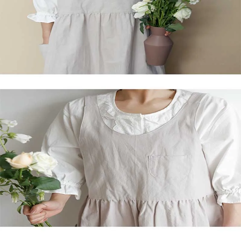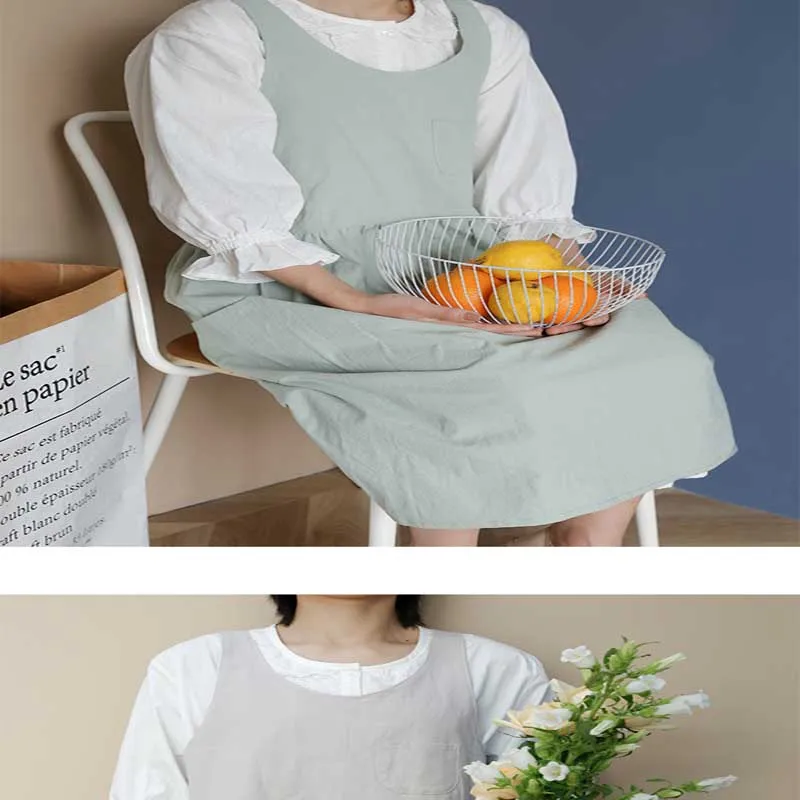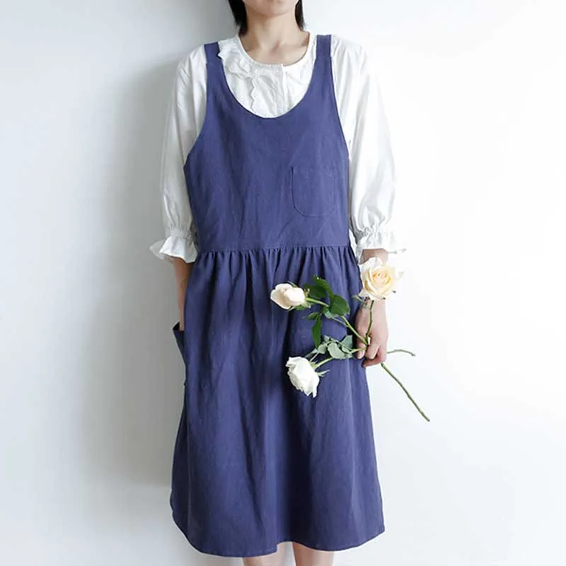 Новинка в скандинавском стиле, плиссированная юбка из хлопка и льна с карманами, фартук для женщин, цветочный магазин, для приготовления кофе, для работы, Униформа, фартуки