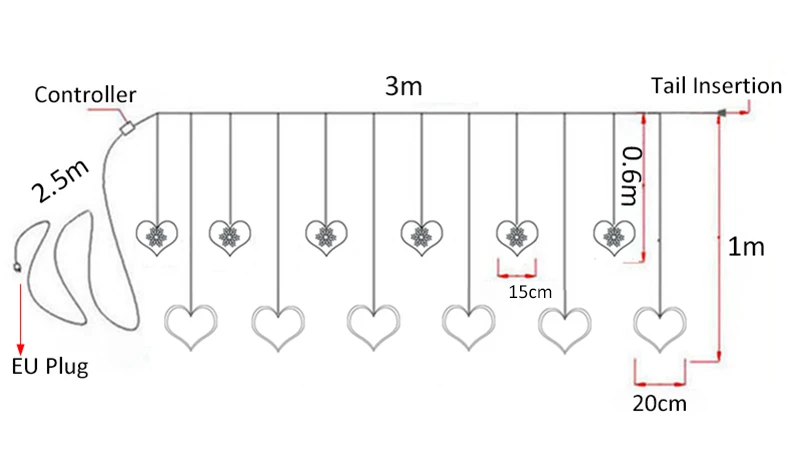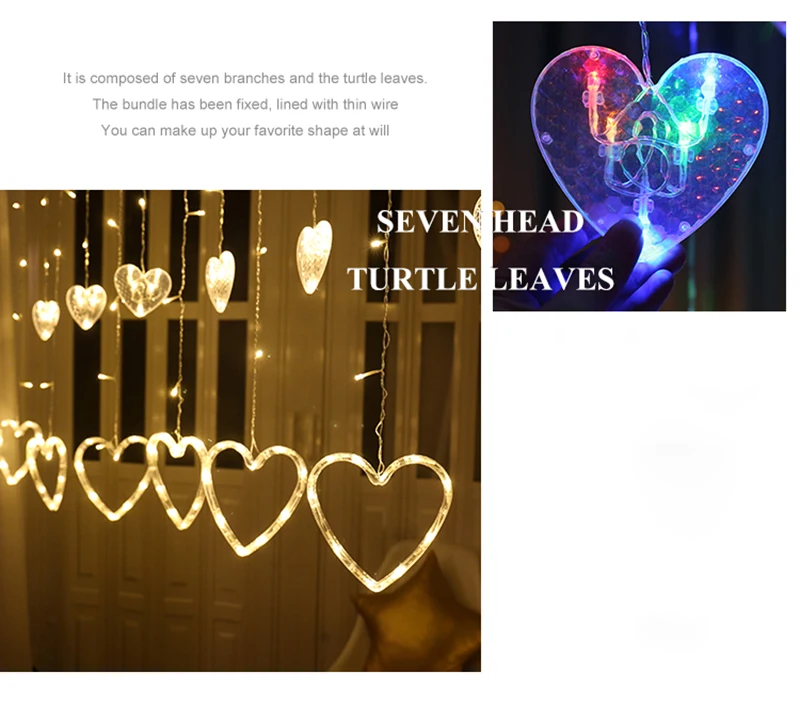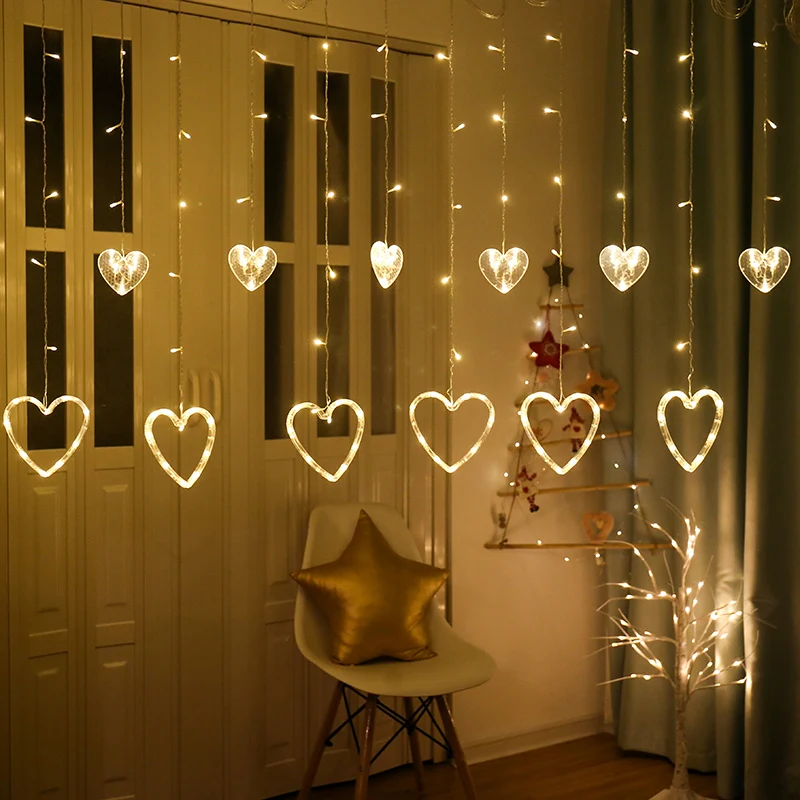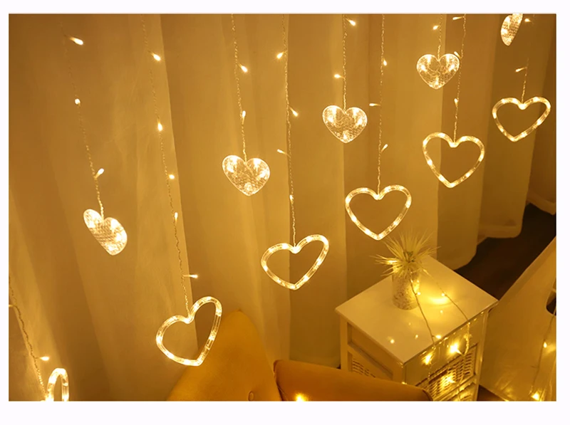Светильник-гирлянда в форме сердца с европейской вилкой, 220 В, Сказочная лампа для занавесок, 3м, 138, светодиодный светильник на Рождество, вечеринку, свадьбу, декоративный светильник