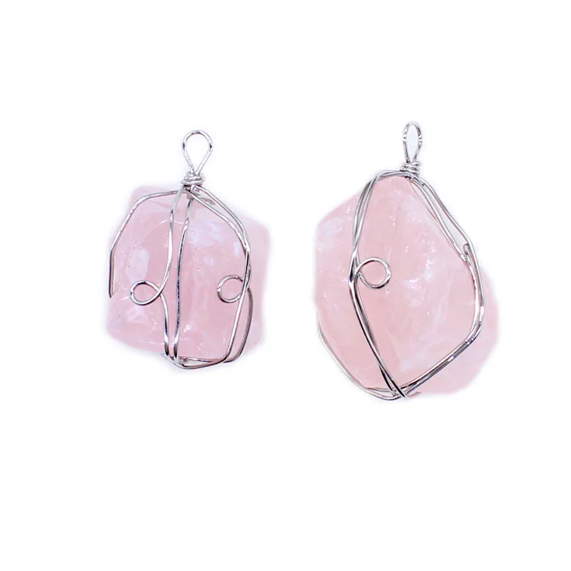 1 шт. уникальный нерегулярный розовый кристалл кварца натуральный камень проволока обертывание кулон DIY подходит ожерелье для изготовления ювелирных изделий оптом