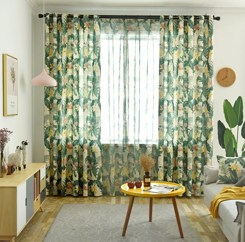 Американский кантри занавес зеленый завод Цветочный гешит гостиной отвесные ткани окна спальни жалюзи на заказ
