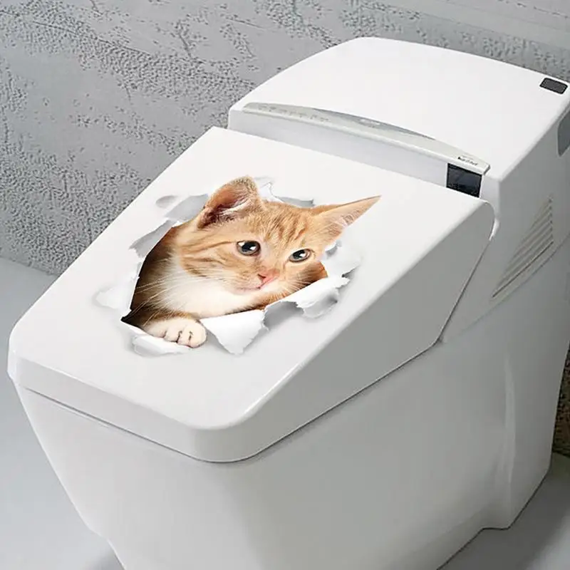 3D милый Кот ПВХ стикер на стену Водонепроницаемый самоклеющийся съемный Холодильник туалет наклейки украшения ванной комнаты