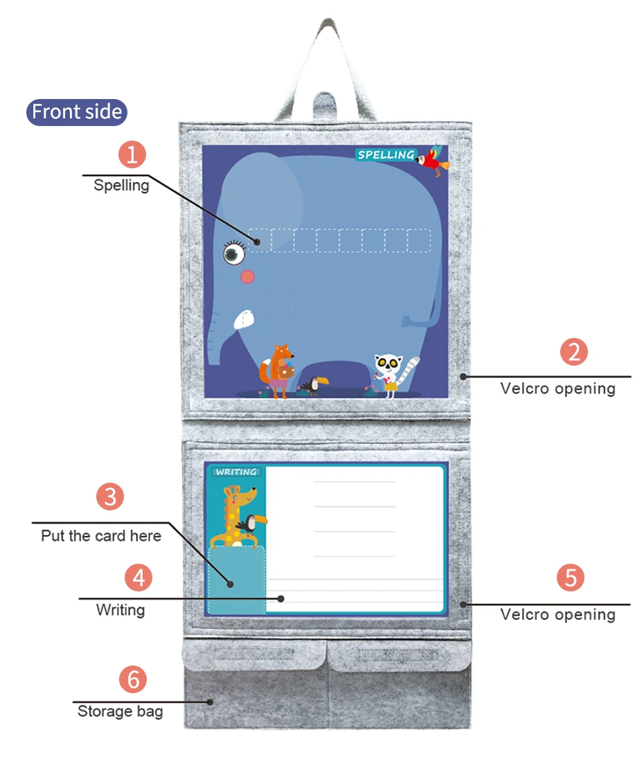 Застежка-липучка: если необходимо очистить, просто откройте липучку с правой стороны и выньте магнитную доску и положите ее обратно для дальнейшего использования после очистки и сушки войлочной ткани.
