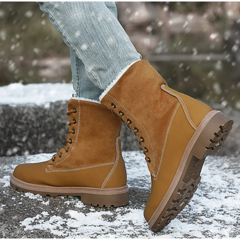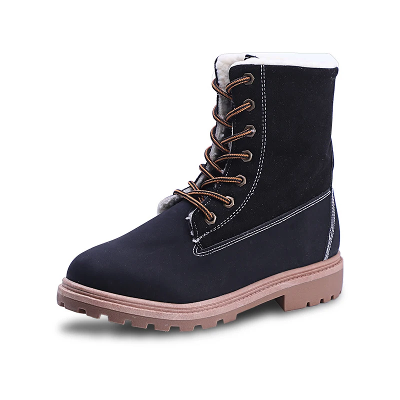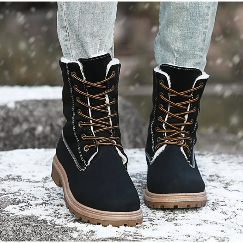 Women Winter Shoes Snow Boots Suede Women Mid Calf Boots Plush Fur Velvet Warm Women Boots Lace Up Non-slip outdoor Women Shoes